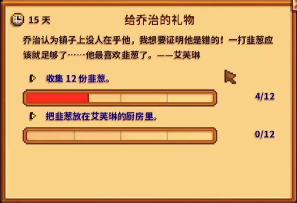 开通刘易斯门口的特别任务板后,在春天有概率接到艾芙琳奶奶发布的“给乔治的礼物”,完成之后艾芙琳会送给农场主一台咖啡机。