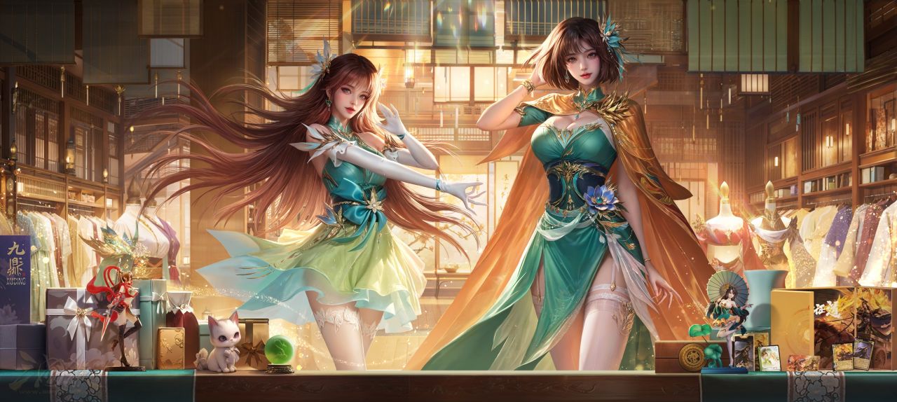 裙如春色碧绡浅,面似芙蓉红粉轻。