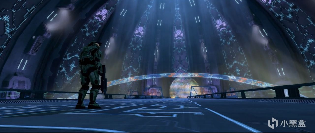 经过激烈的战斗,来到控制中心,一个很大的房间投影着光环的全貌。