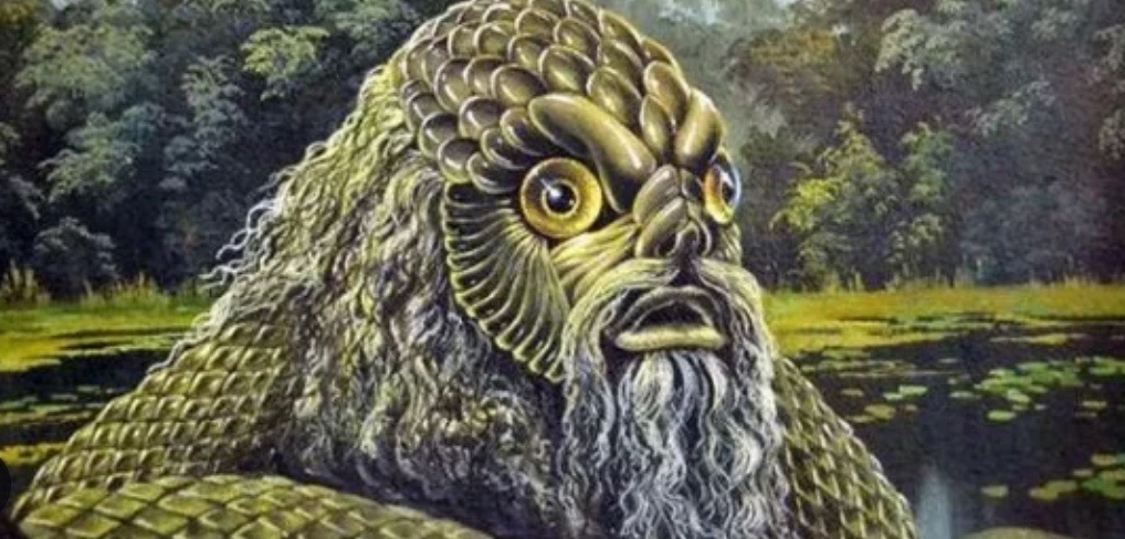 它生活在水域中,身形像一个老年男子,长着一张青蛙脸,红色的眼睛,浑身覆盖着藻类和淤泥,还有人说它身上长着鱼鳞。