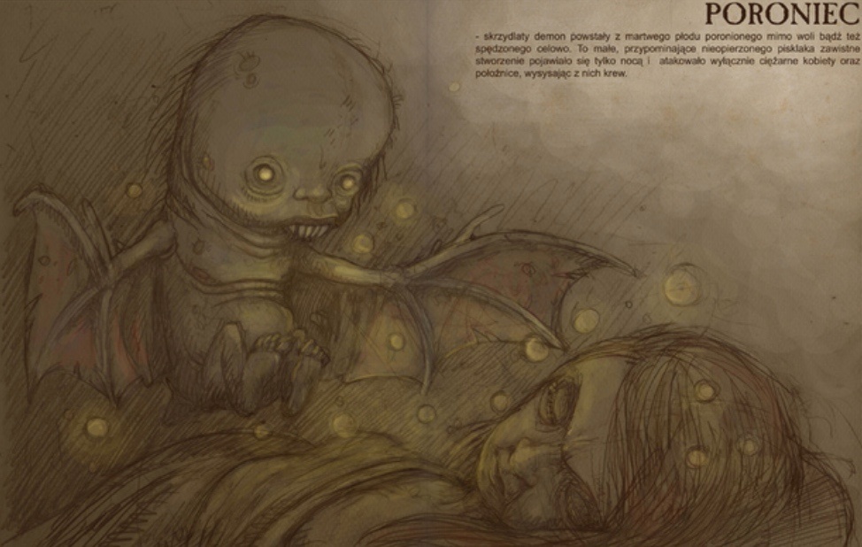 巫师3的玩家肯定不会忘记尸婴的故事。巫师3完整地还原了斯拉夫传说中的尸婴形象。它们长得就像尚未发展完全的婴儿,缠绕着脐带,令人看了就胆寒。夜间,它们会徘徊在家中,徘徊在孕妇身边,窃取她与腹中胎儿的生命力。当孕妇逐渐虚弱,它会用尖牙攻击孕妇,并喝干她的血,致死她和腹中孩子的死亡。