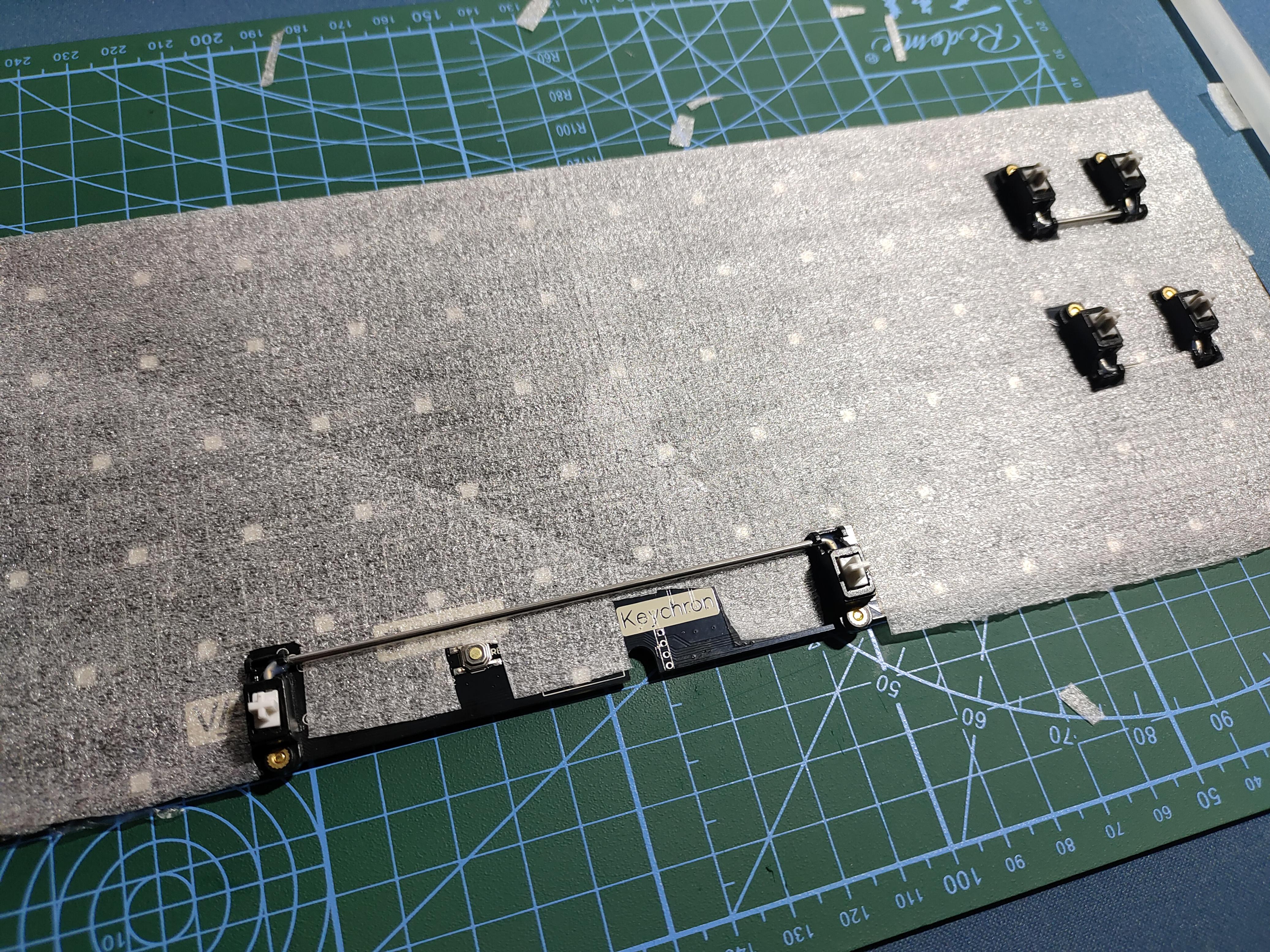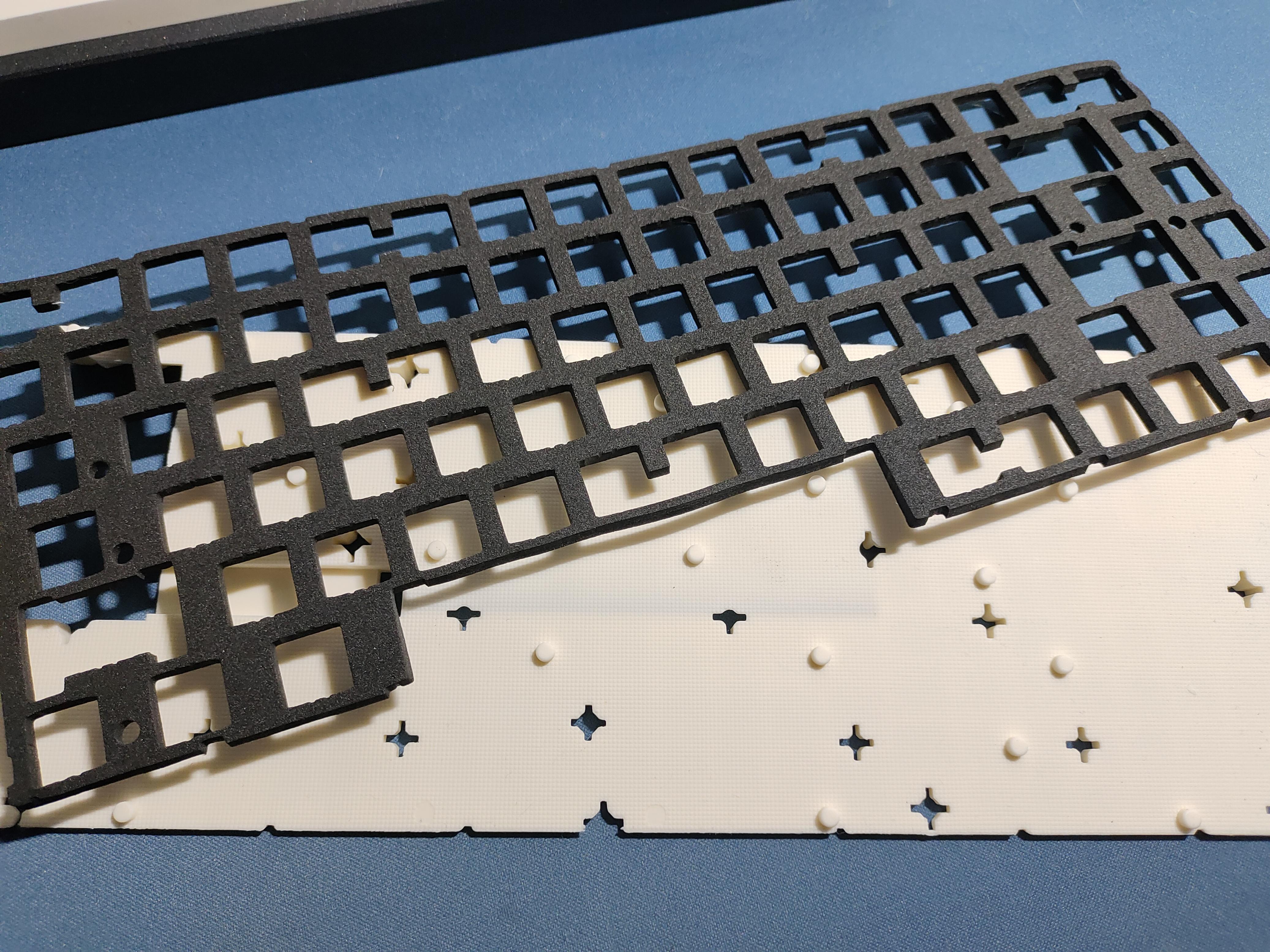 这里我使用了epe棉作为轴下垫,声音上epe棉自己的特色很足,所以相对来说容易变为咱们经常听到的所谓麻将音,不过如果追求更好的体验可以尝试ixpe,poron棉等。