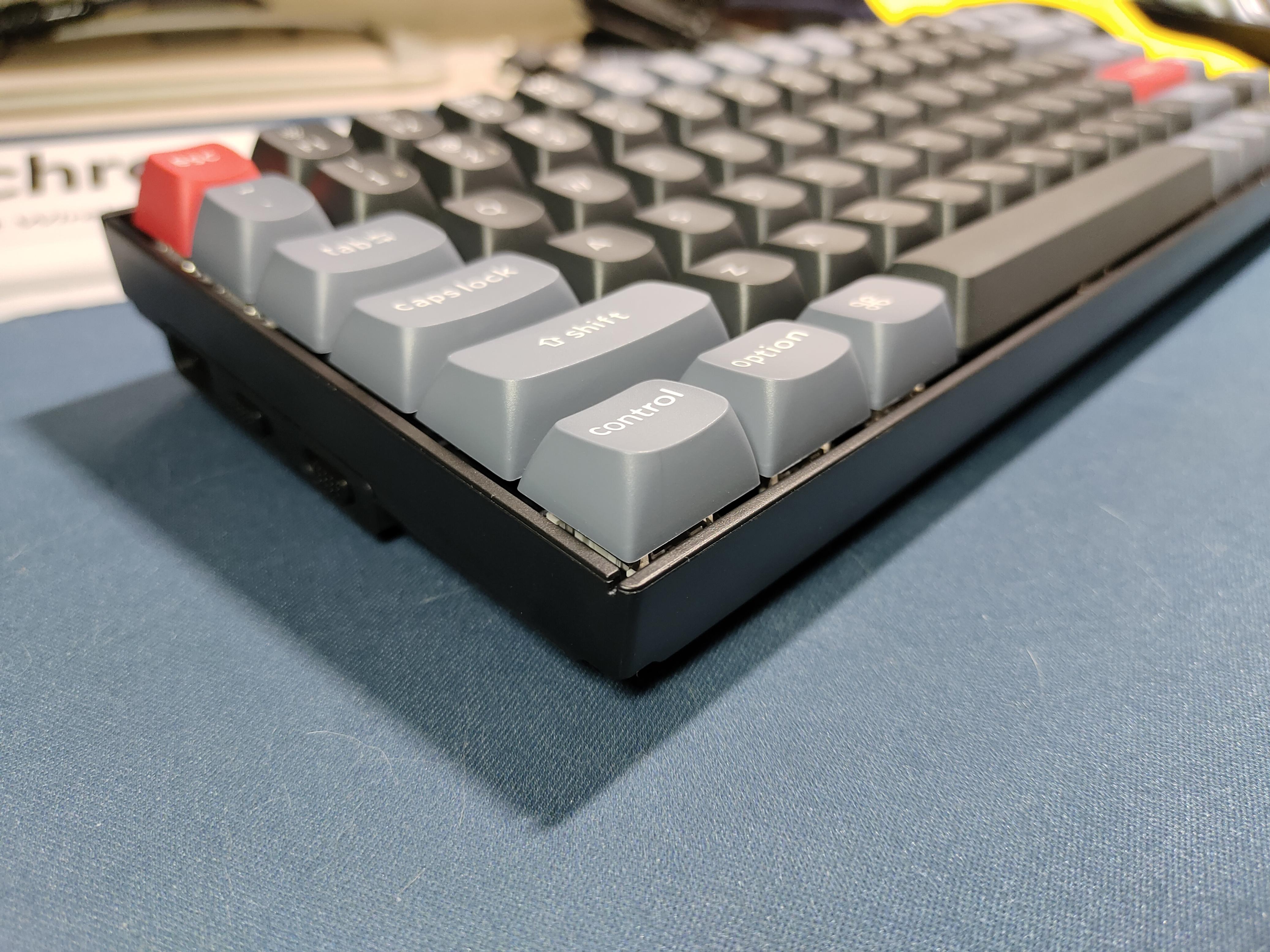 渴创的这把K2pro是一款铝制边框/塑料边框可切换,有线蓝牙双模,完美适配mac,拥有qmk/via改键,下灯位,4000毫安电池续航的75%紧凑配列(84键)机械键盘