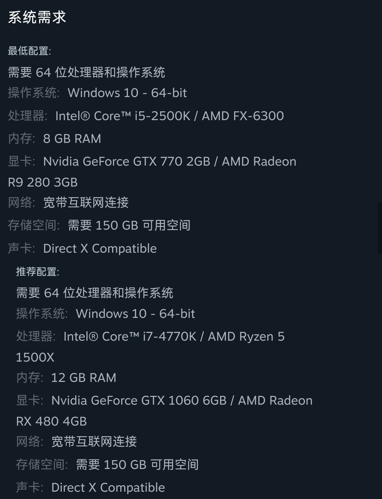 游戏配置要求: