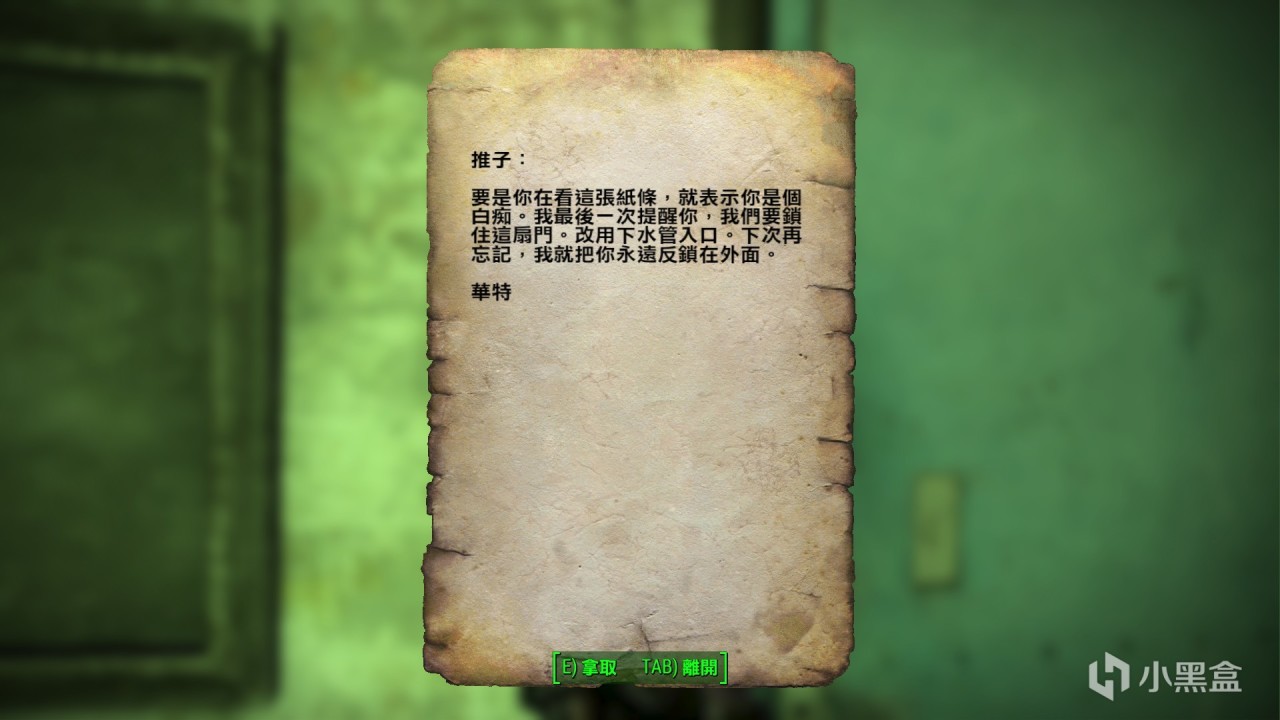 華登湖的左前方有一間破屋,屋子裏的牆上有一張紙條。