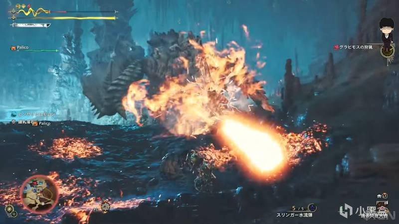 還有一個就是炎流巨炮,迴歸的鎧龍在炎流巨炮上有了很多改良。常規的直線噴吐,站在原地持續噴射3秒左右。針對近身,貼地的範圍噴吐,只能提前遠離,持續時間也差不多3秒左右。扇形範圍左右橫掃噴吐依舊3秒左右。還有變招的點射,演示中出現了3連發效果