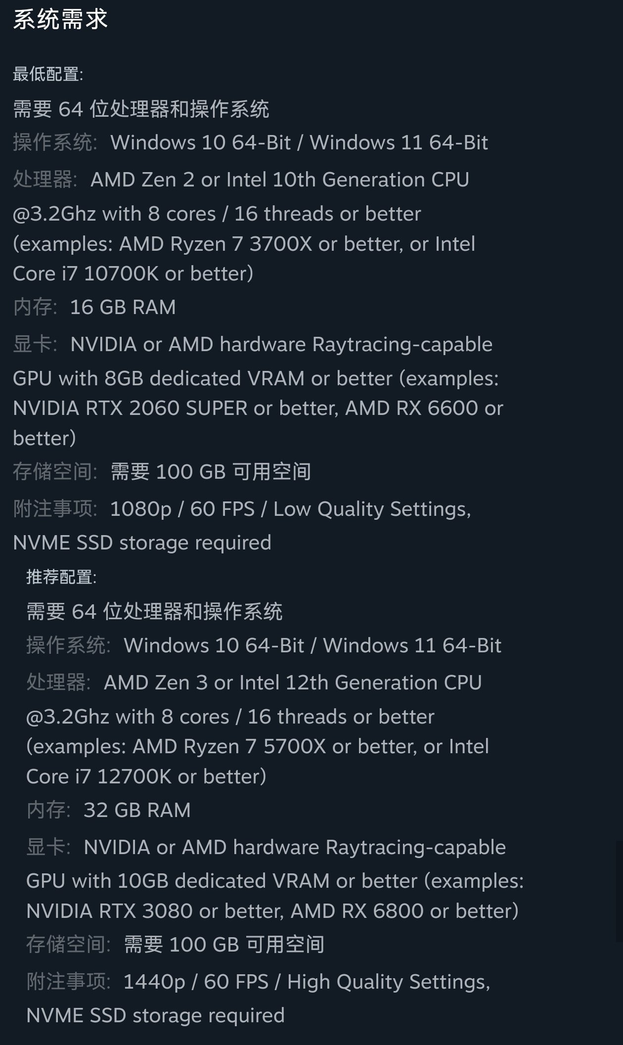 游戏配置要求: