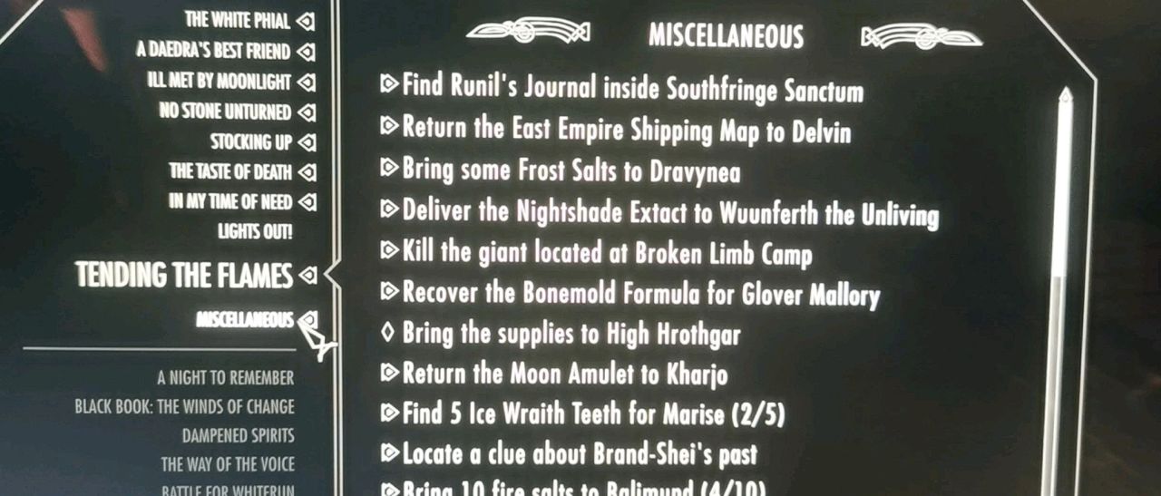 令人驚訝的是,《上古卷軸5:天際》的750個任務中,主線僅僅佔了相當少的一部分,其餘大部分的任務,全都分佈在支線與雜項任務中。有還沒玩過的觀衆就要問了,這個“雜項任務”又是什麼呢?