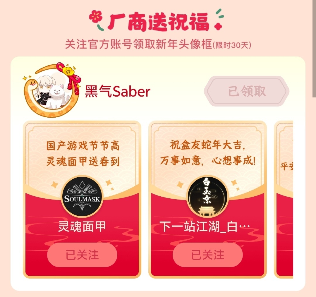 关注厂商领取蛇年头像框