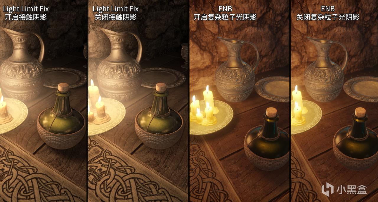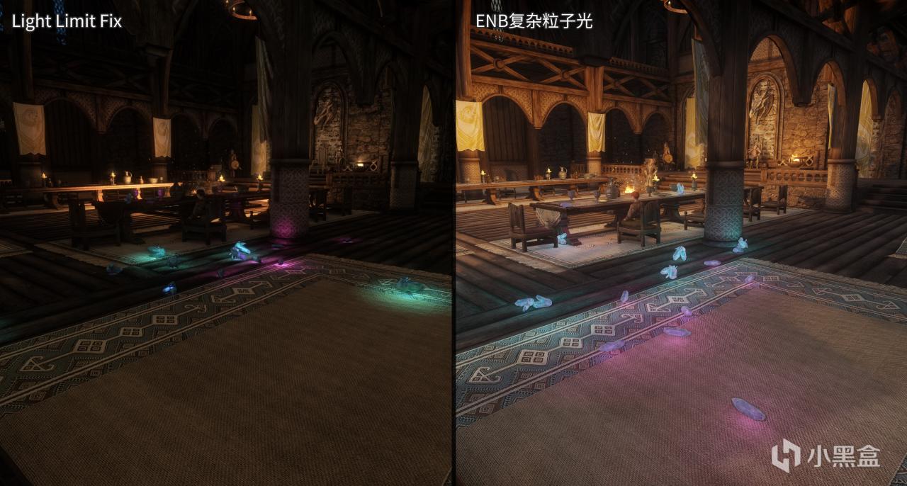 其實關於Light Limit Fix,光源限制修復,如同模組頁面上的提示所說,這項功能並沒有解決上古卷軸5引擎上的光源陰影限制問題,它所實現的功能與已產出的模組就目前而言給我的感受和ENB的複雜粒子光很像,但性能會更加友好。在PO3所製作的Light Placer插件後可能會出現更多的有明顯效果的模組。