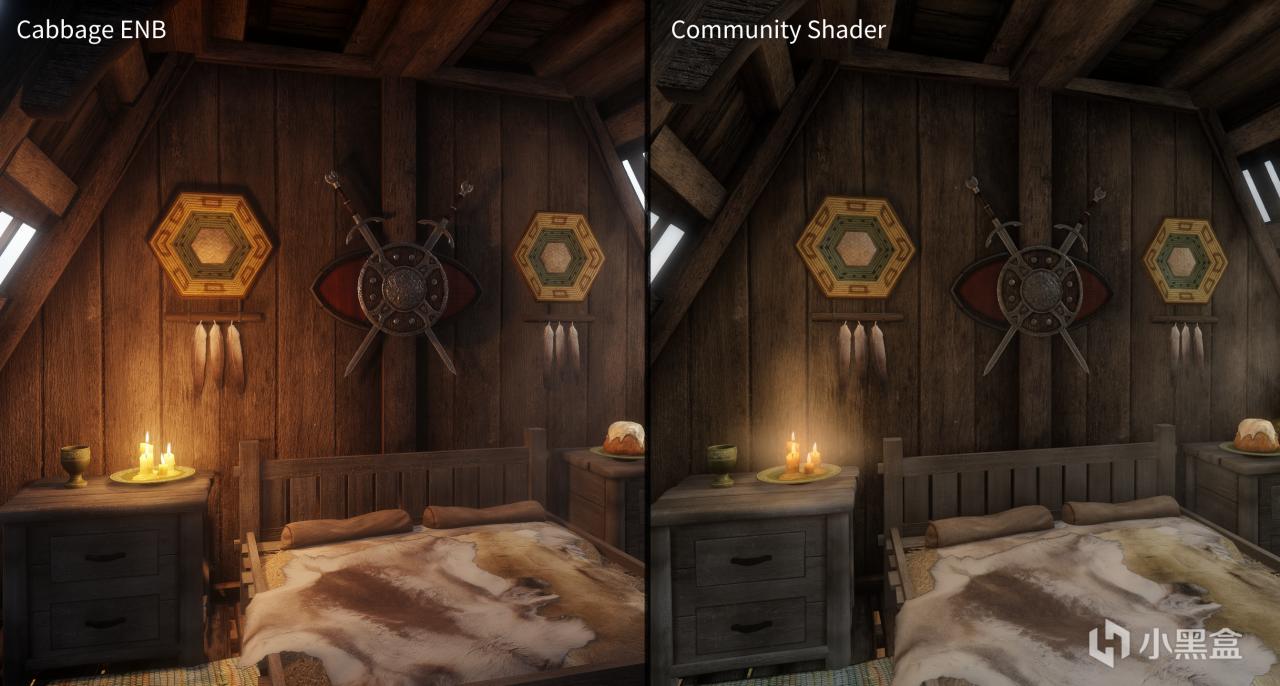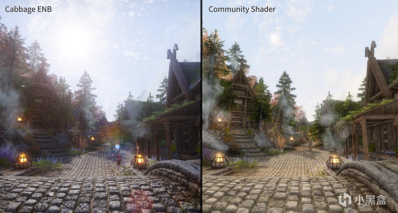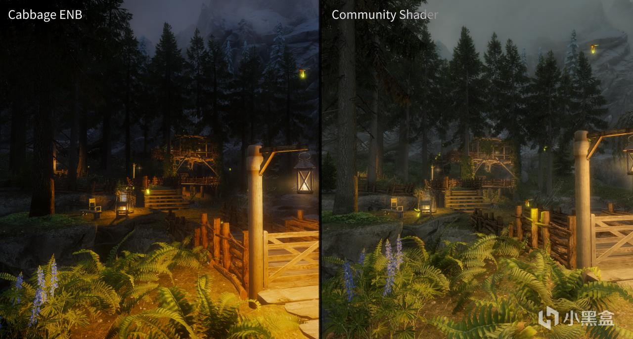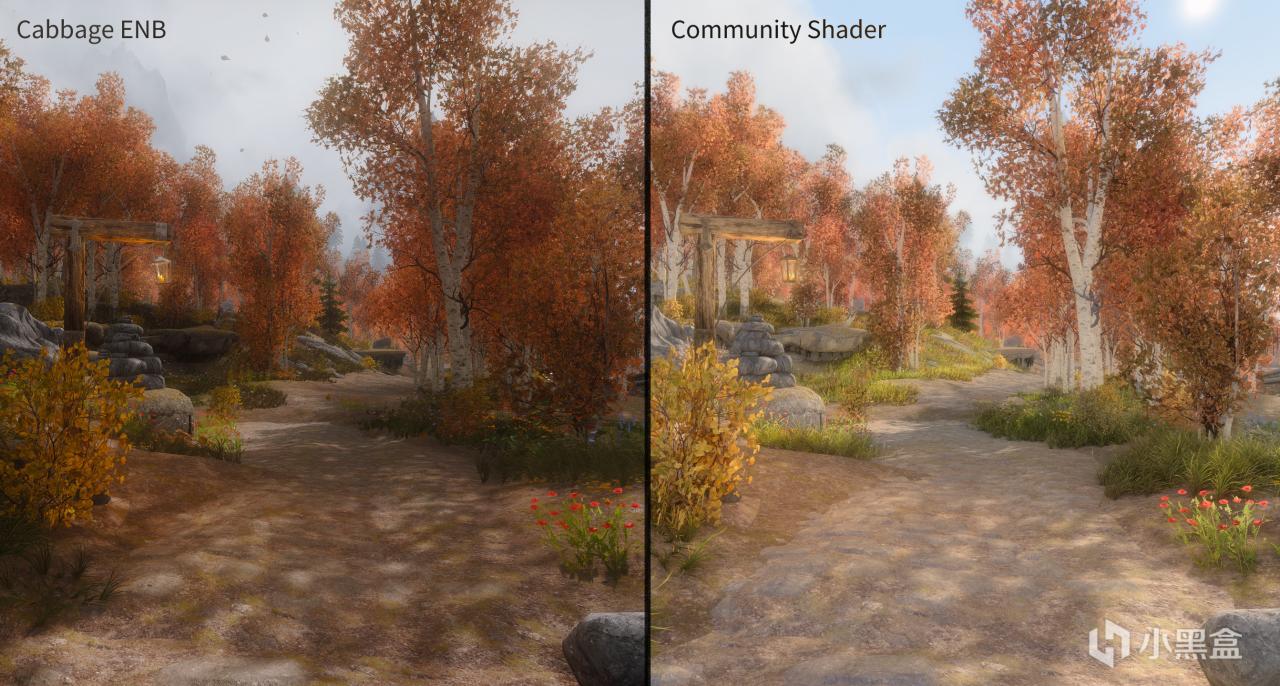 社區着色器有一些獨有的特性,因此社區着色器與ENB在目前呈現出了兩種觀感體驗上很不同的情況。