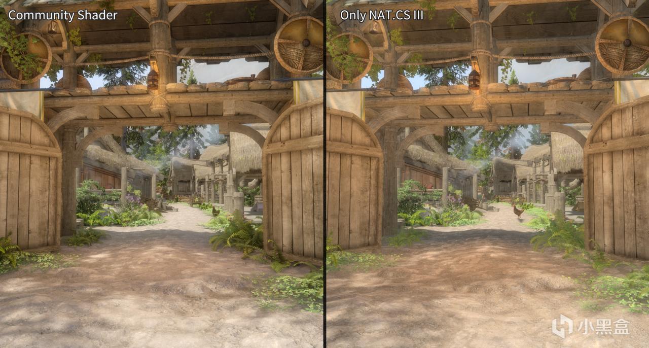 爲了減少一些天氣因素導致的差異性,ENB天氣模組使用NAT.III,社區着色器天氣模組使用NAT.CS III,且均爲同樣的天氣下拍攝,且使用的材質一致,因爲PBR材質目前缺口較大我還沒有進行使用。