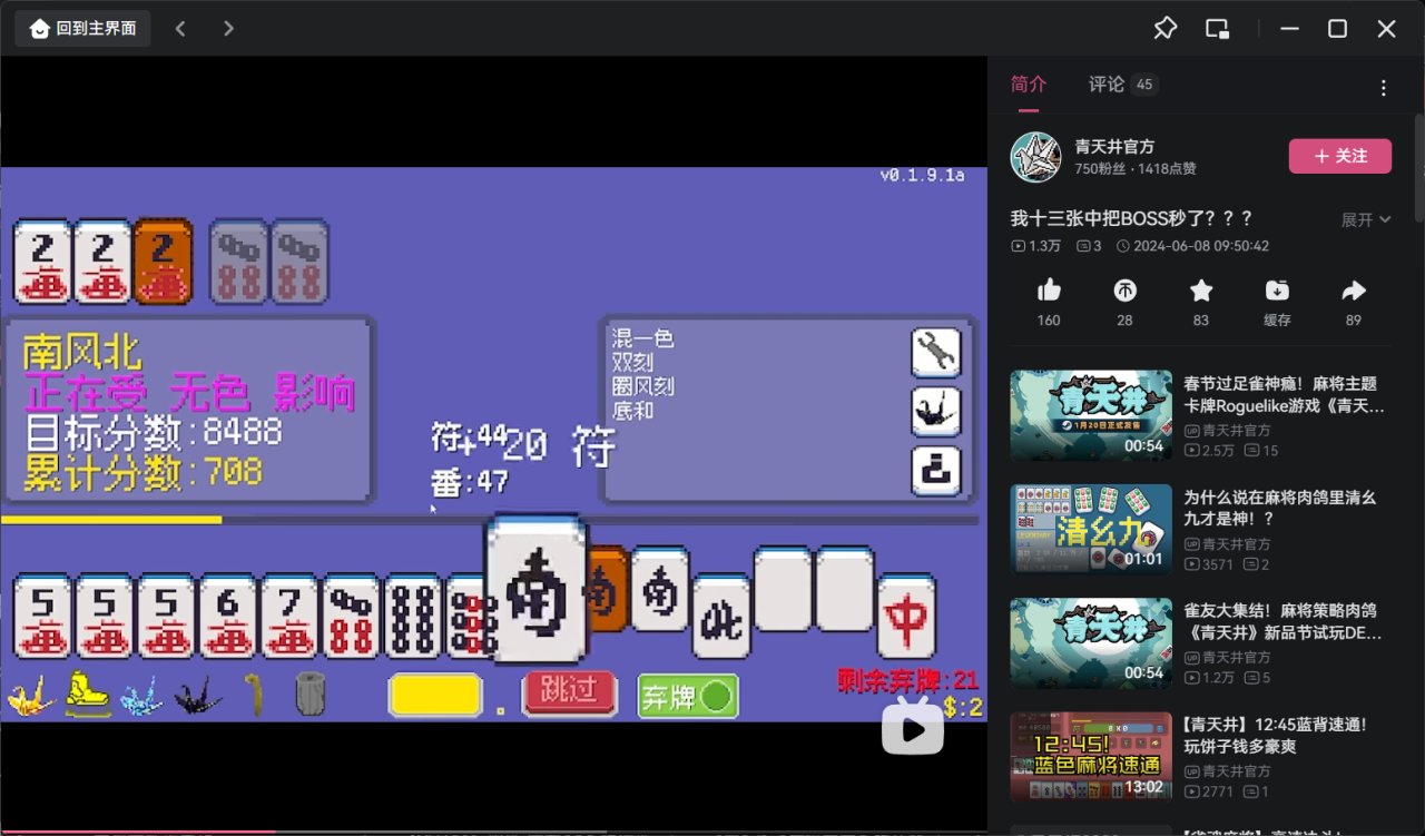 如果我说,前几天跟朋友打麻将到晚上十二点,到家后又在电脑前玩了几个小时单机麻将游戏,好像确实有些离谱。对比下来,我甚至觉得这单人麻将与四人麻将乐趣相当,这篇游戏评测也是我在自助棋牌室“鏖战”四个小时,回家后又在《青天井》与“心魔”博弈“两个小时后开始着笔。