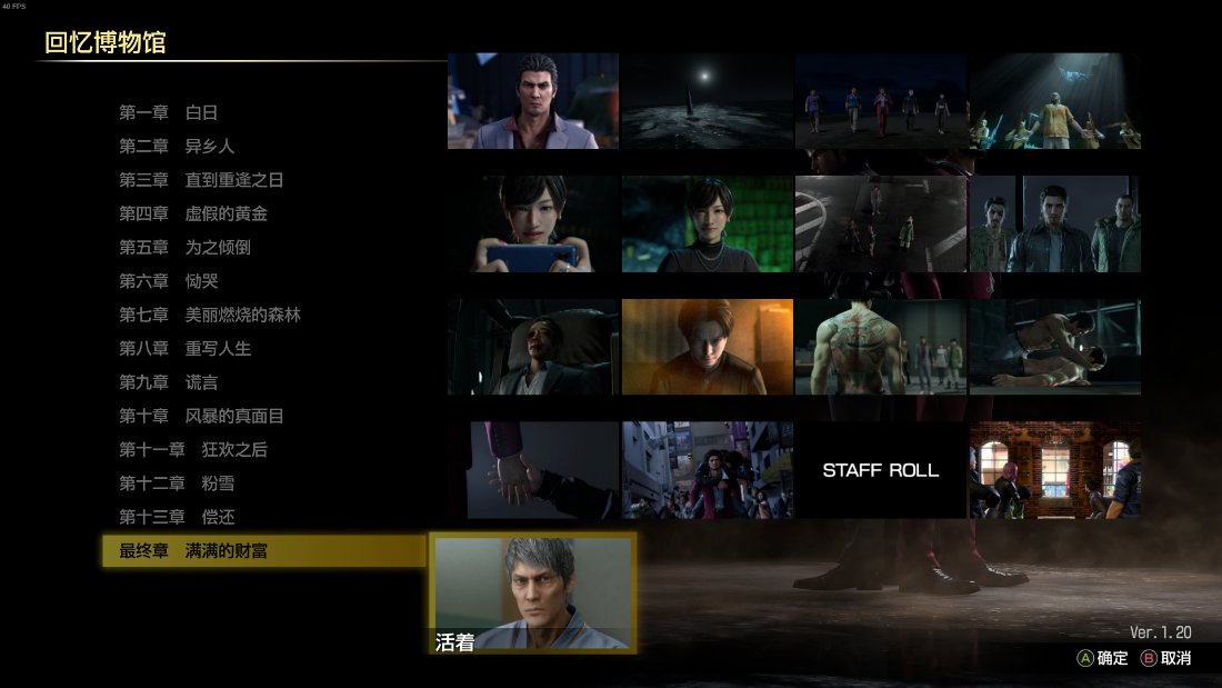 通关之后,打开cg记录,会发现最后一个桐生一马的cg名为《活着》。是啊,活着才会有依恋,才能有感受。这份依恋与感受也会让人更加想要活着。人生就是如此美妙的事。
