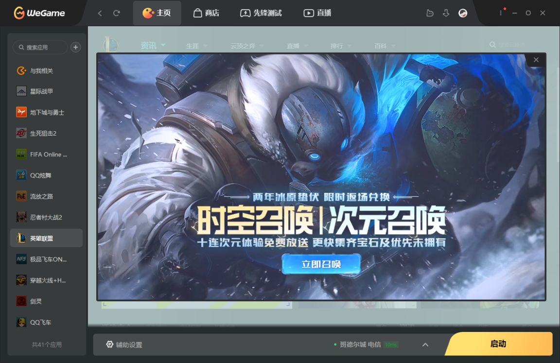 接着我們繼續對比,在客戶端裏選擇遊戲主頁...WeGame是真的抽象,點進去絕對有廣告。