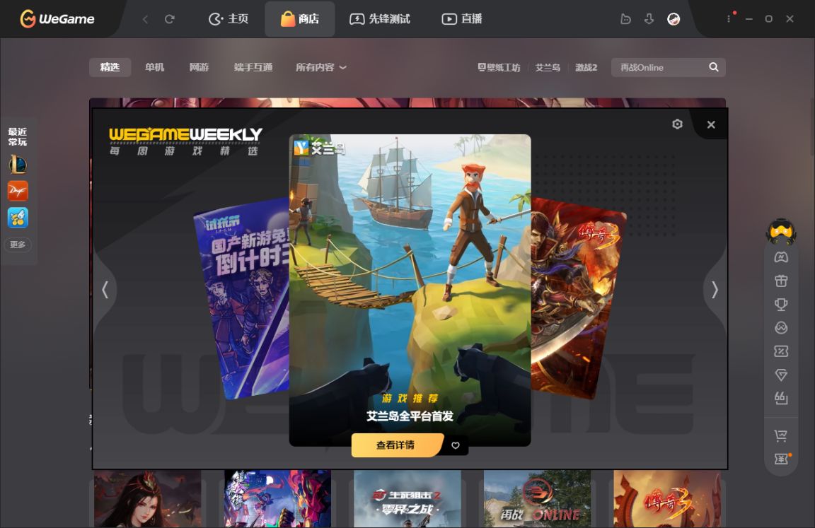 然後考慮到客戶端裏的界面,我依舊認爲WeGame或者說國內很多客戶端都有個毛病“塞更多廣告”,WeGame登陸會彈出一個廣告窗口,這個窗口集合了三種遊戲廣告,在推薦算法上也有問題,推送的不是目標用戶,是大面積撒網。