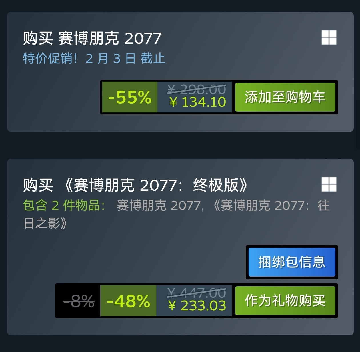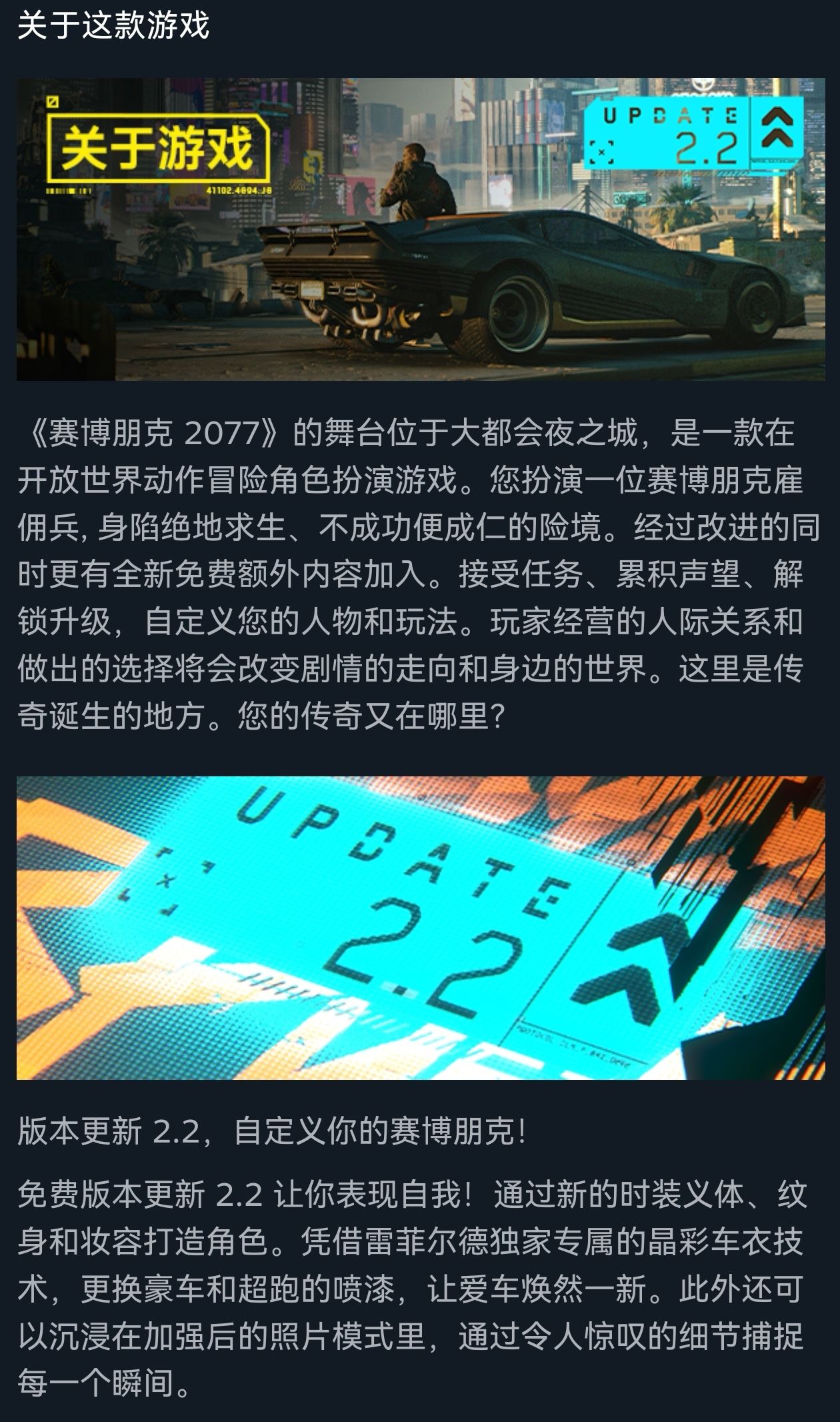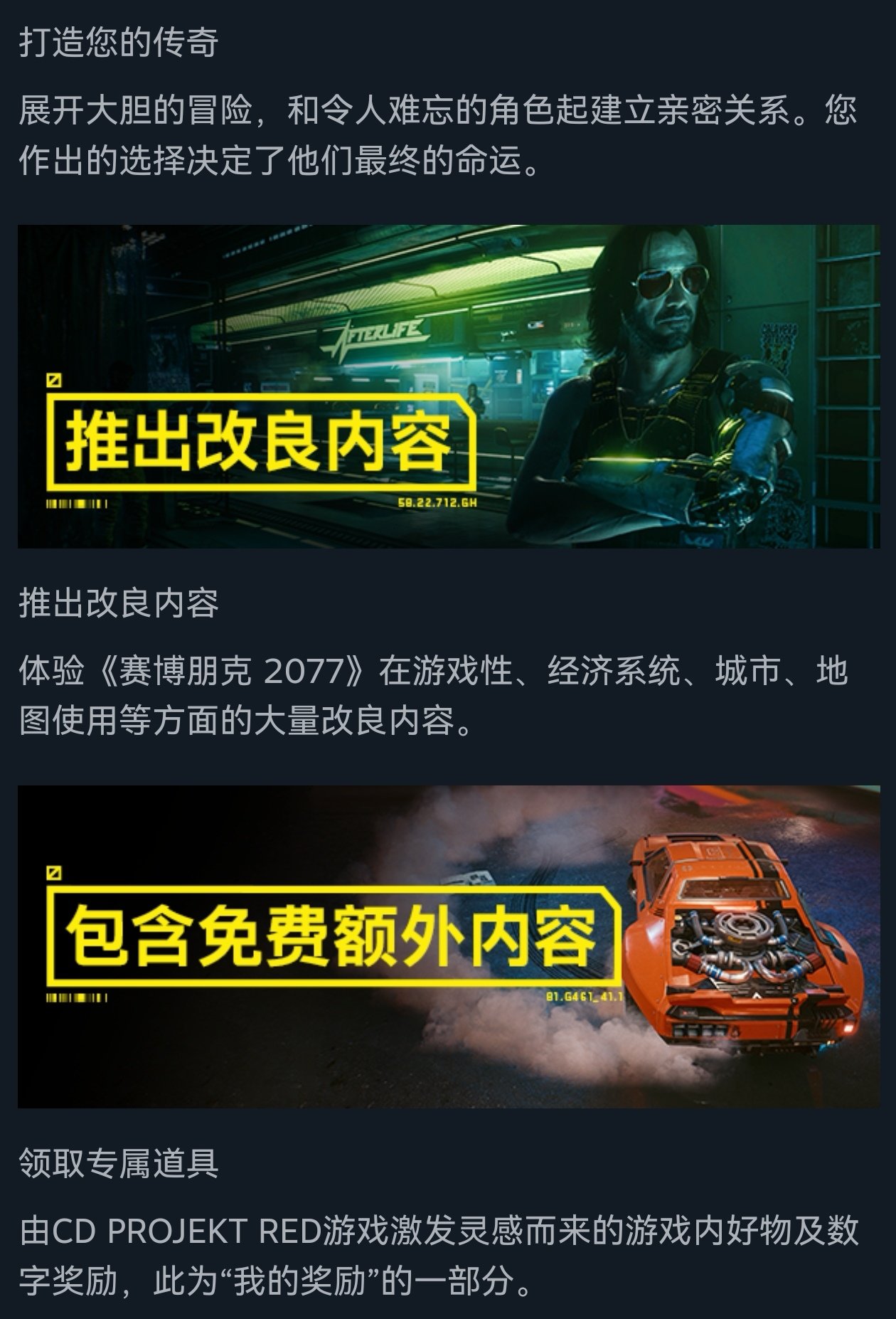 大家好,今天,《赛博朋克2077》迎来了其史低的价格134.1元,游戏为CDPR公司的赛博朋克世界观下的作品,是现在市面上最好而且是体量最大的赛博朋克风格的游戏了,游戏本体与DLC均迎来了史低价格,而且游戏最近还更新了2.21版本。