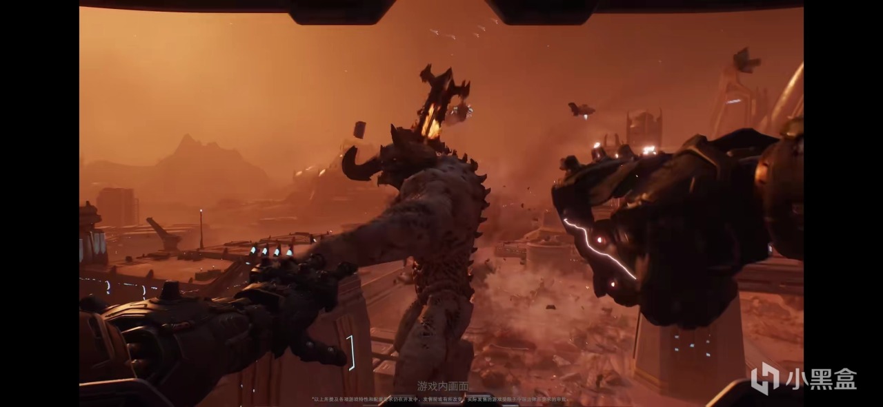 科幻和奇幻的风格融合,带来了全新的观感体验。在中世纪背景下有了更多的探索地点和更多强力和“实用”的武器。当然游戏不是只有射射射,听取了前两作玩家的呼唤,在最后我们甚至还能看到毁灭战士操控30层楼一样高的巨大生物亚特兰机甲来进行战斗。举手投足之间翻山倒海,磅礴力量呼啸而过。画面演出效果直接拉满,游戏体验自然是直线上升。
