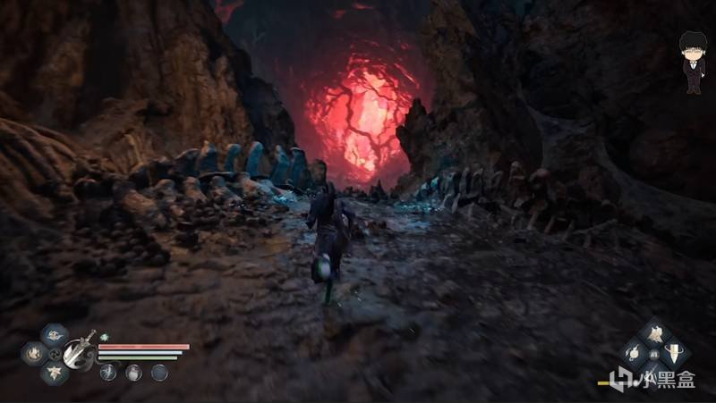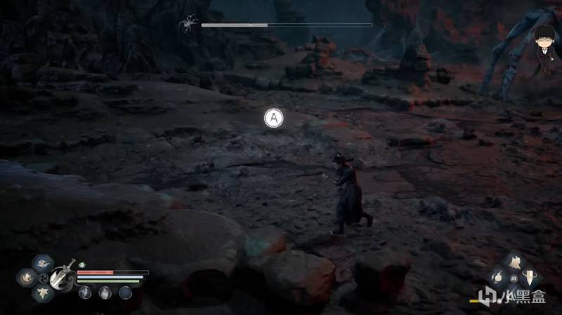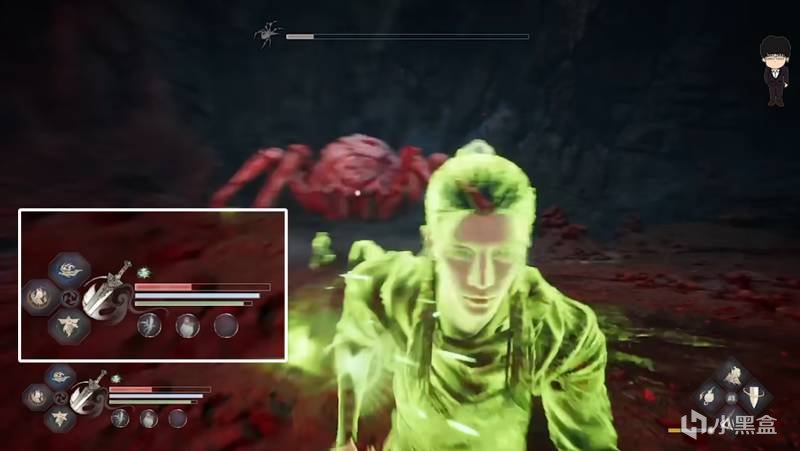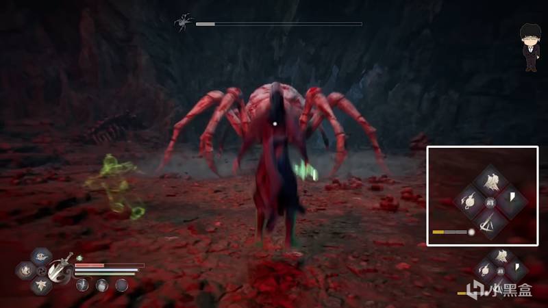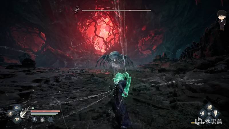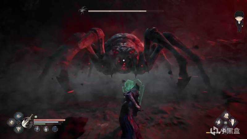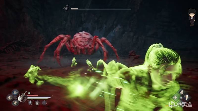 第二段是经典怪物“血玉蜘蛛”,场景貌似在一个全新区域。起手三连蛛丝给了一波传统操作。血玉蜘蛛的吼叫前摇不太明显。一波常规攻击后就是一长段的QTE过程,这块设定主要是为了展示效果,相信在QTE的节奏把控上,未来游戏化会做的更好。QTE方面的设定或许大家会想到老版的《战神》123,而这样的设计理念也非常适合《凡人》项目的开发