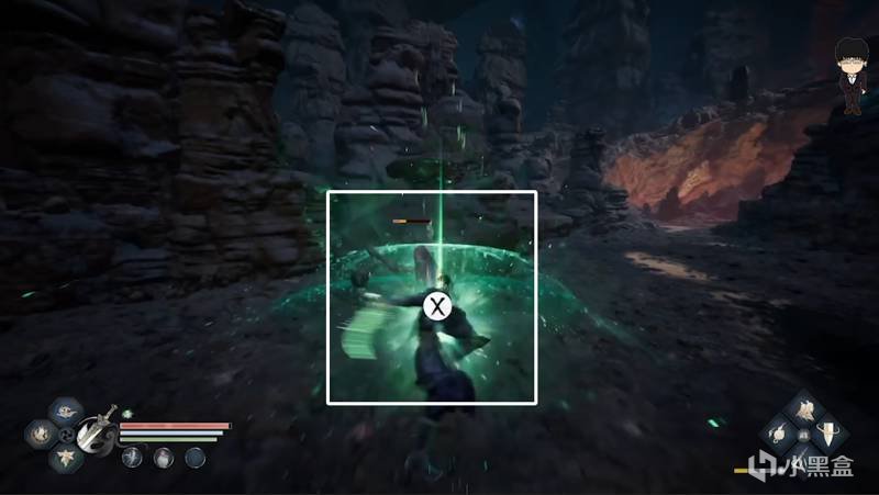 试玩DEMO在战斗上主要分两场展示,首先是一场普通小怪战斗。常规漂浮空中位移对应UI上的绿条消耗,可通过浮空游走到场景中大部分可站位置。类鹰眼技能(神识)可了解到敌人对应修为,看过动画的玩家们都知道,韩立本身外表修为相对较低,神识强大无比,所以在设定上估计可以通过神识了解到超过自己至少好几个级别的敌人
