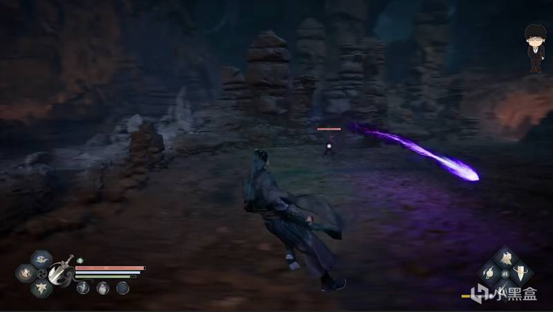 敌人AI上目前是进入区域触发战斗,战斗中有对应常规近战远程。玄铁飞天盾可以无伤招架,青元剑诀的分身可有效规避攻击,浮空飞行的时候,速度上可以闪避弹道 ,同时进行有效输出。金蚨子母刃在使用的时候会消耗蓝条。对应蓝条和绿条,在未使用状态下都会随着时间慢慢恢复
