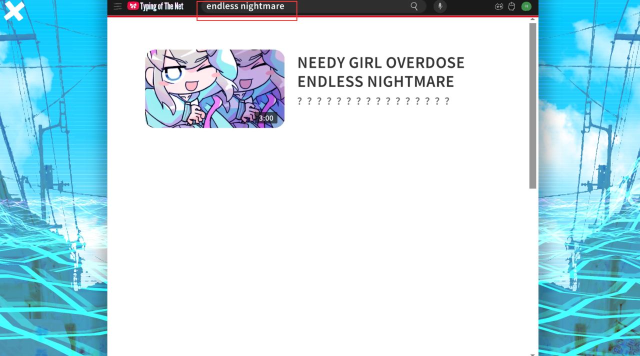 随后,当你将「ENDIESS NIGTMARE」这串英文字母放入上方的搜索框中进行搜索后,便会弹出一个含有16个“?”问号的神秘视频。