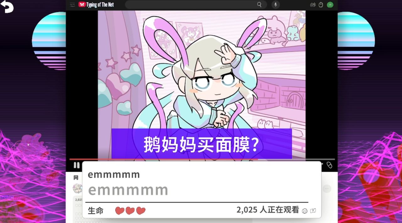三个本体打字关卡+五关的银河恶魔城小游戏,结合这些内容《主播女孩重度依赖 网络梗打字通》便足以撑起这价值25块的游戏体量。