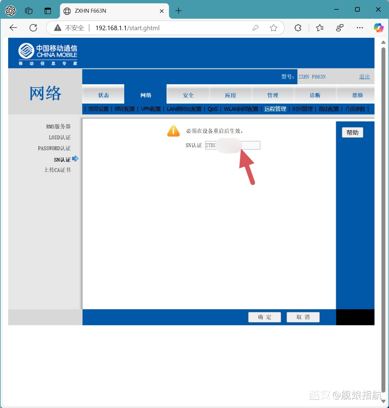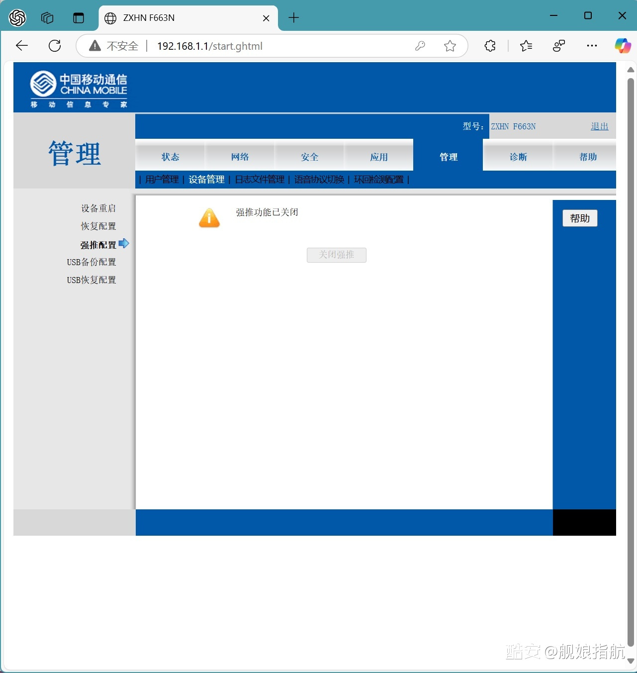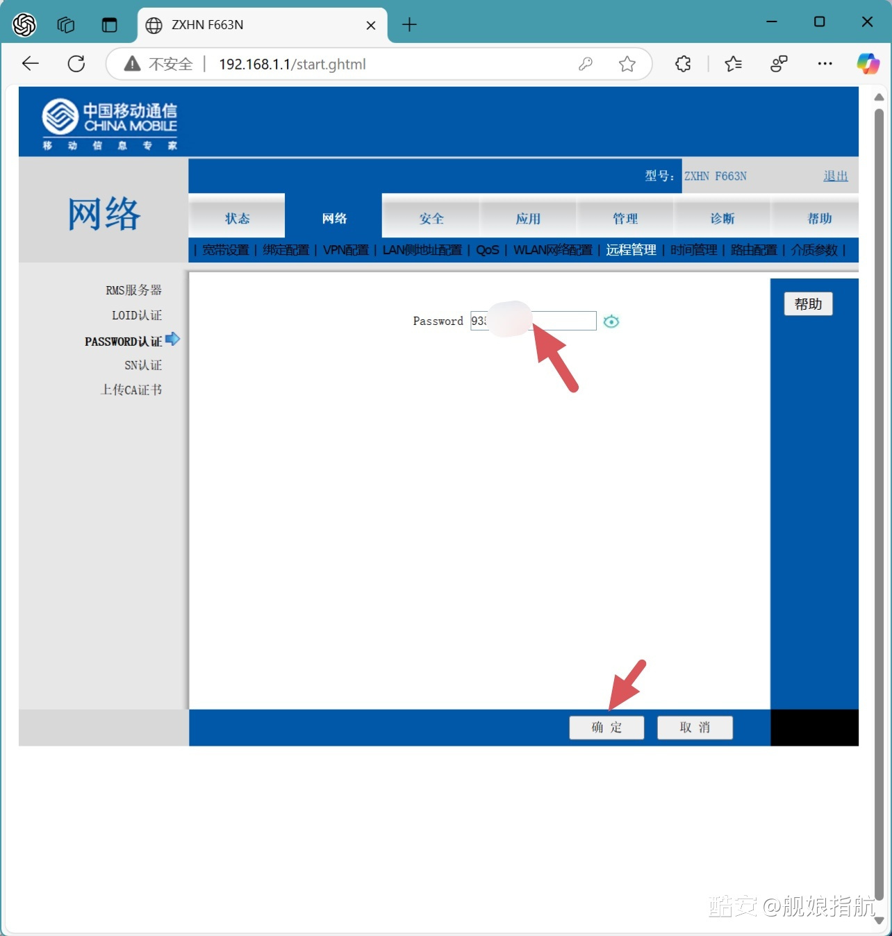 楼主家的光猫是中兴的移动老光猫f663n,路由器是红米AX3000。为了实现光猫桥接,你需要知道你家光猫的超级密码,目前三大运营商均已采用动态超密,获取比较困难,