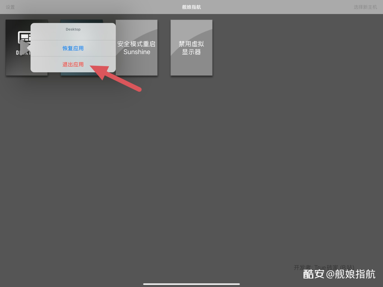 请注意,键鼠手柄耳机等设备连接平板即可。若要退出串流请点击DESKTOP退出应用,此时电脑屏幕便会亮起。