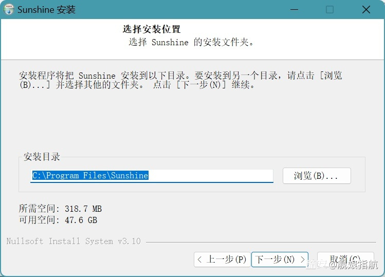 Sunshine请安装在C盘默认路径,否则会导致部分功能失效。