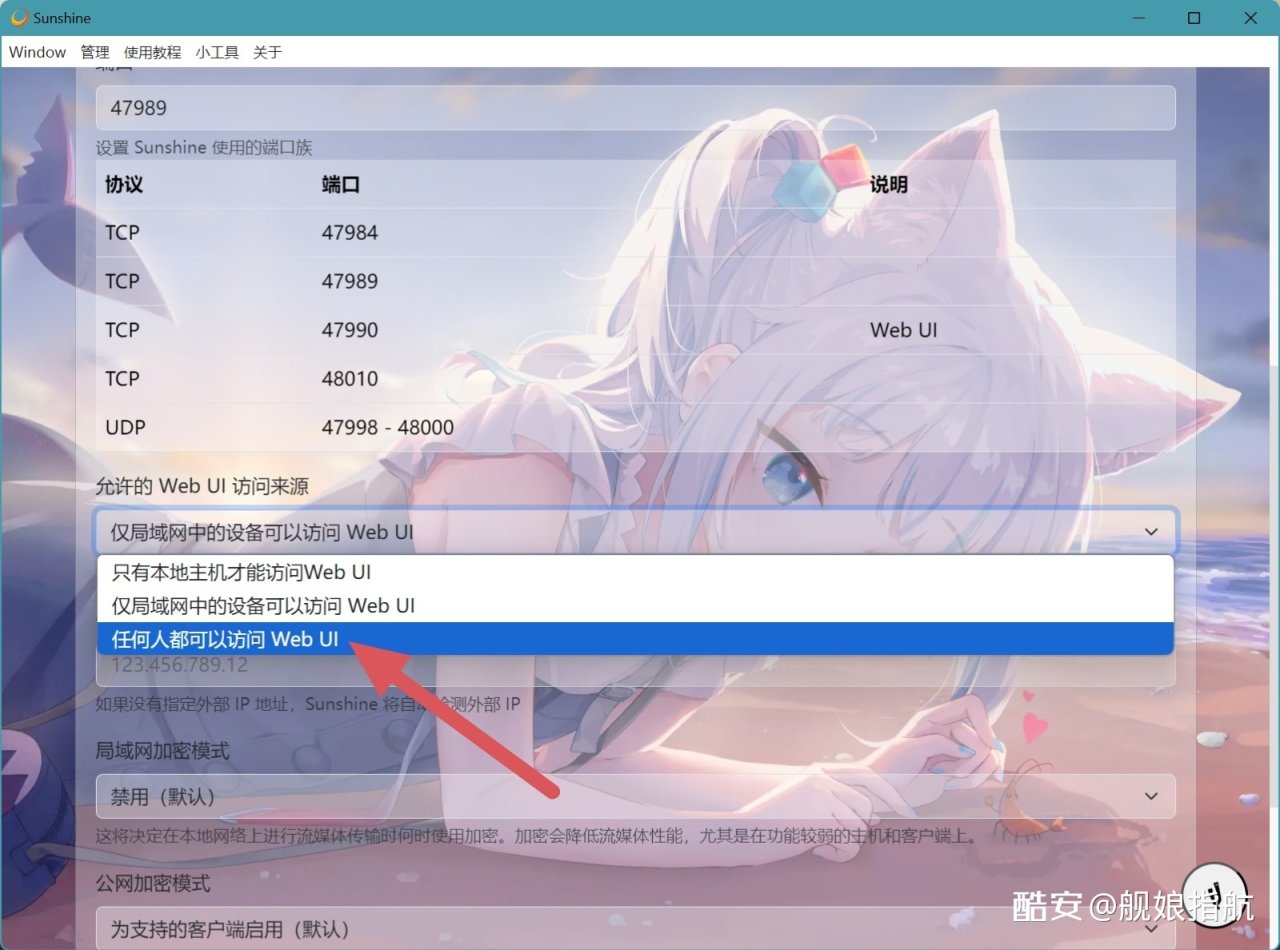 • Moonlight+Sunshine的局域网串流方案应该是目前最优方案之一,公网串流方案就仁者见仁智者见智了。当前的公网串流方案主要包括公网IPv4/v6和内网穿透技术(如网易UU远程、Zerotier、TailScale和皎月连等),它们优劣势各不相同,你可以自行尝试。IPv6的优势在于普及率高易获取、直连且延迟低、带宽更大更稳定、安全性高以及成本极低等,劣势在于部署比较复杂。