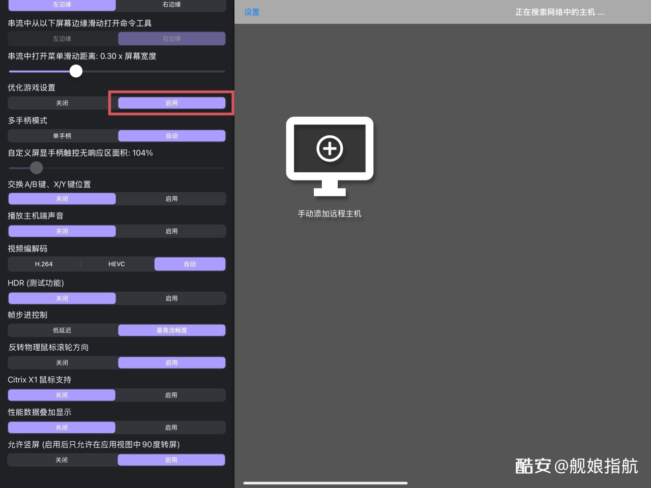 关闭手机WiFi并使用5G网络,在Moonlight手动添加远程主机中输入你购买的域名。