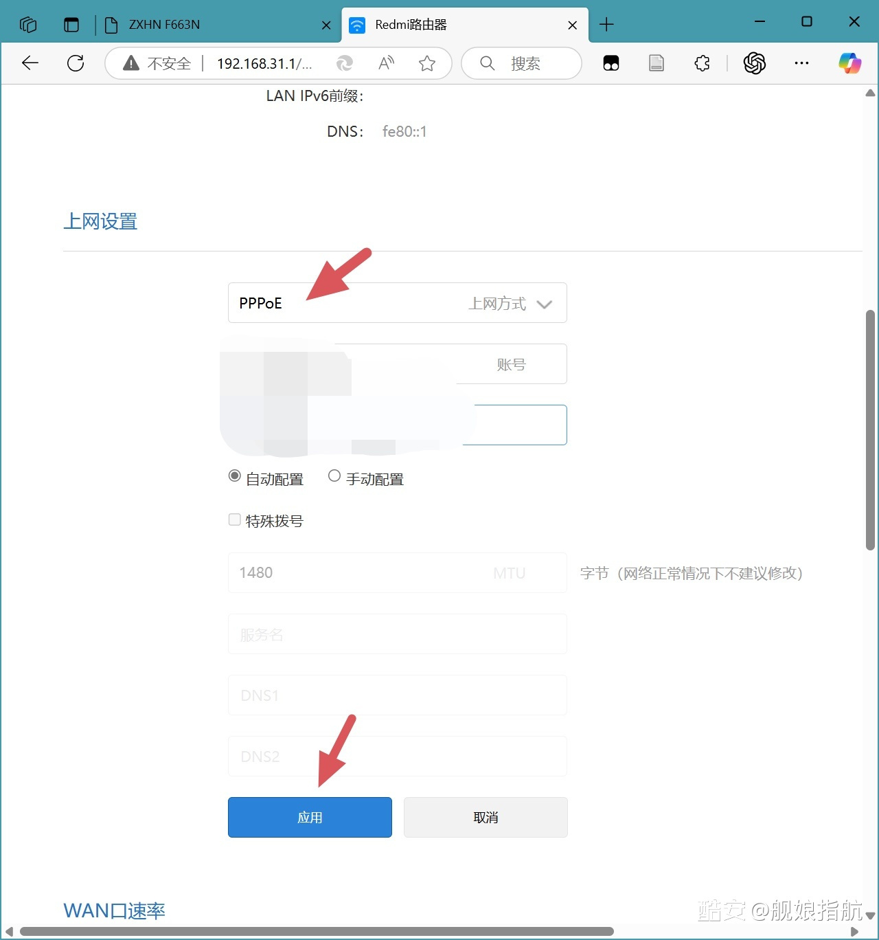 登录路由器后台——常用设置——上网设置——上网方式选PPPoE——填写宽带账号密码——应用。