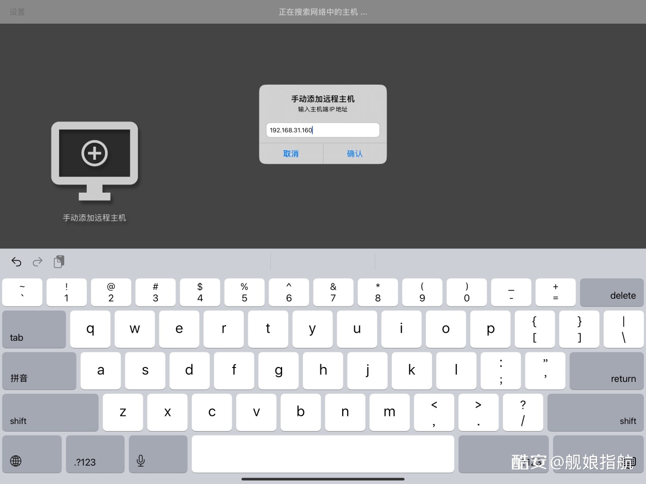 在Moonlight手动添加电脑中输入电脑局域网地址。