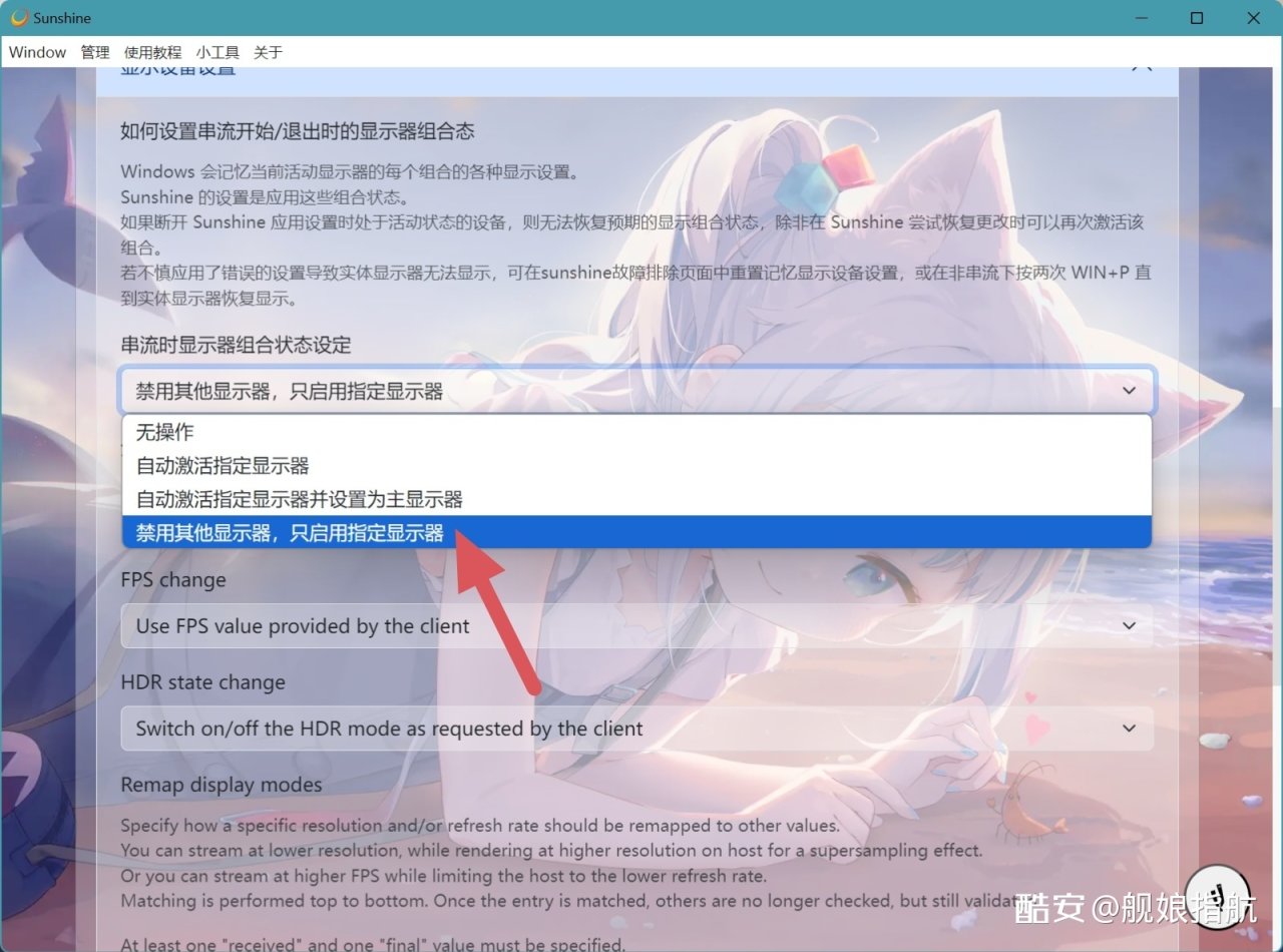 串流时显示器组合状态设定——禁用其他显示器,只启用指定显示器。