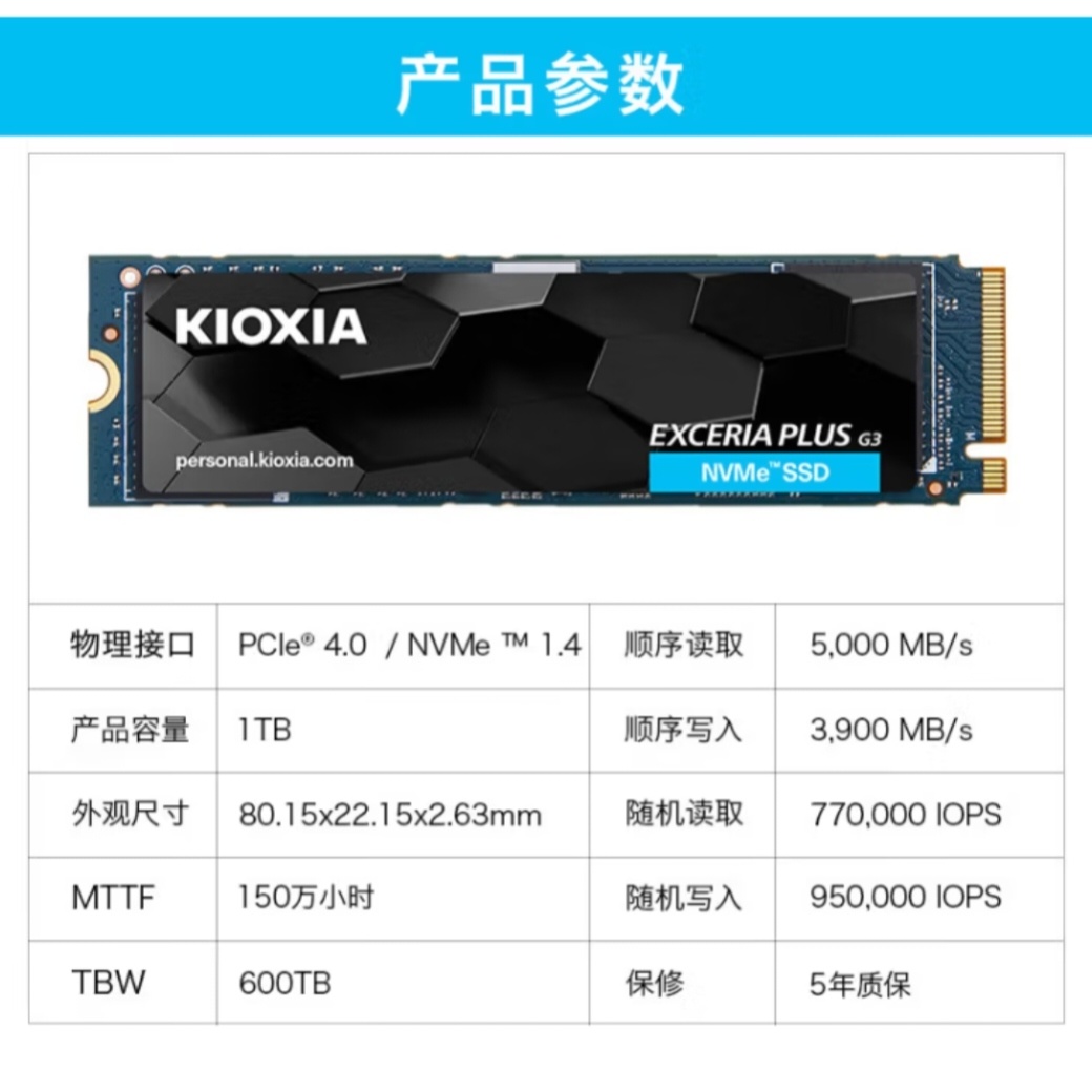 铠侠SD10-1TB,5000读速,原厂TLC颗粒,群联主控,稳定不掉盘,购买硬盘时,最好选择能自主生产颗粒的品牌,质量更有保证。