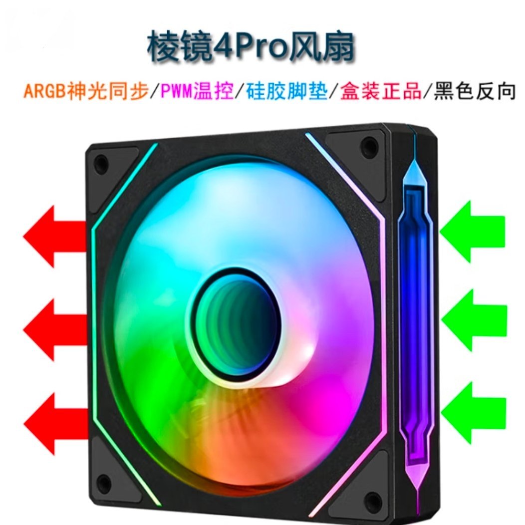 棱镜4PRO,7把(4反3正)组成风道,外观镜中镜效果,高级感拉满,散热效果显著,运行平稳噪音低,价格便宜