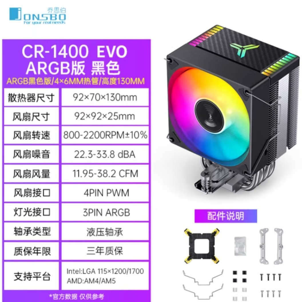 乔思伯CR1400EVO ARGB,四根铜管轻松压住这颗cpu,而且这颜值无需多言