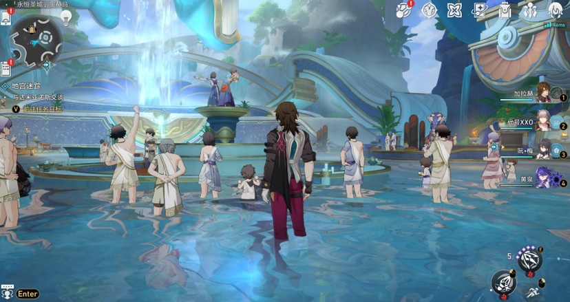 通過乘坐大地獸,來奧赫瑪欣賞的風景,還可以去滿溢主池,去體驗一下當地人對於泡澡的熱愛;又或者去雲石市集,看看本地人一天的生活。總之可以充分地感受翁法羅斯的風土人情。