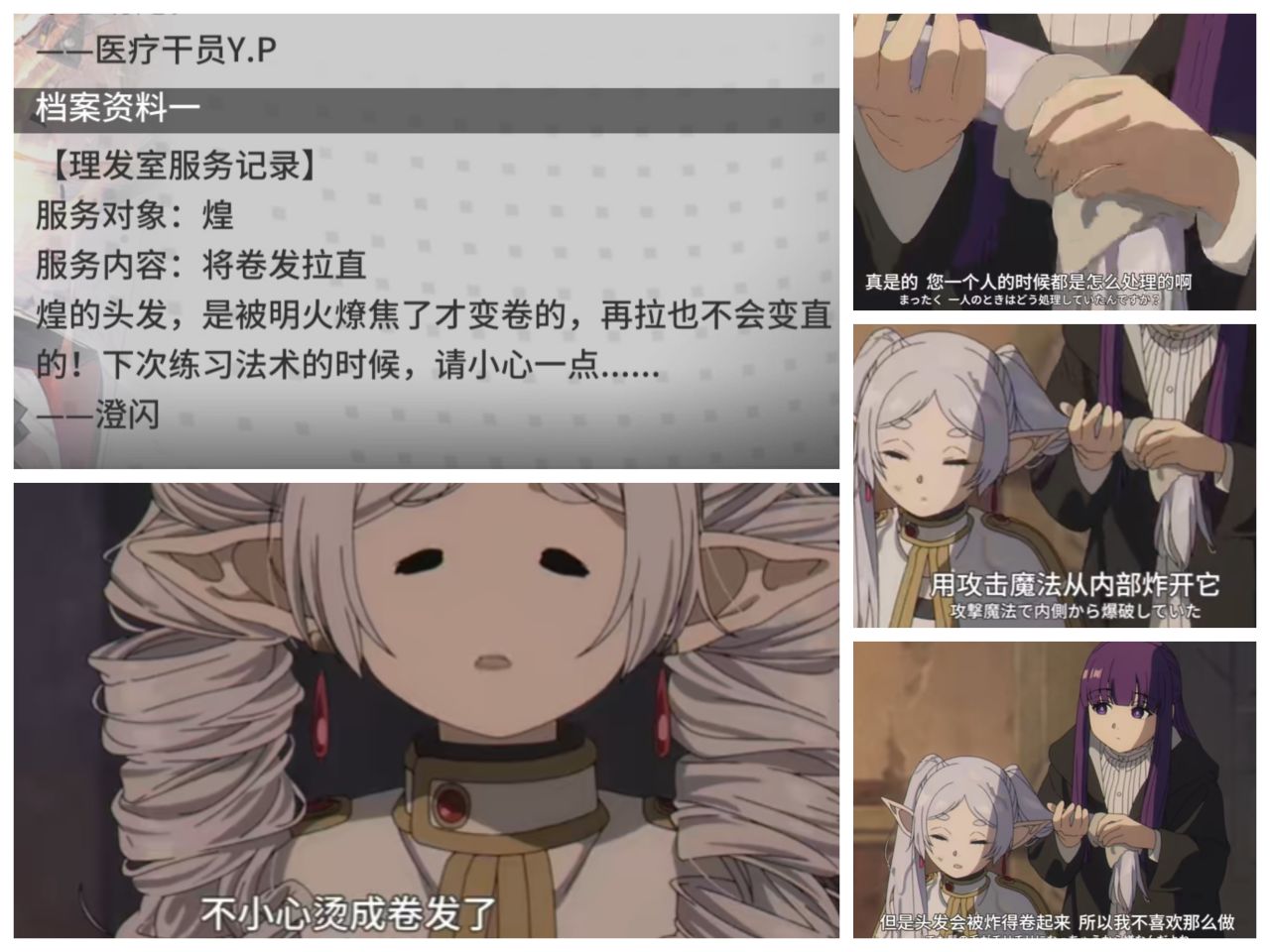 ④煌在練習關於溫度的源石技藝的時候經常會因爲高溫把頭髮炸起來,此事在《葬送的芙莉蓮》中亦有記載