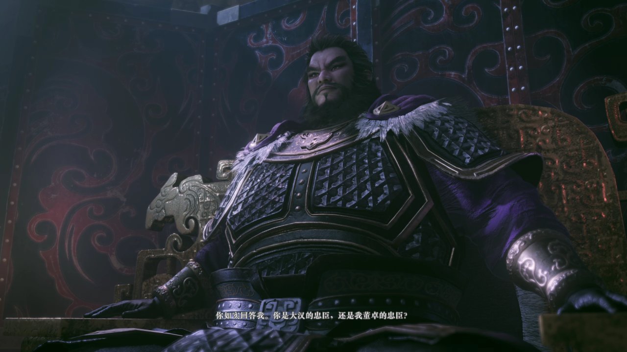 董卓也不是一个痴呆胖子,而是崇尚弱肉强食,择人而噬的猛兽。高举王座上的质问,壮硕的体型与不再丑陋的嘴脸,透着几分霸主之气。