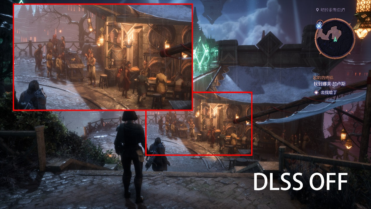 由於遊戲畫質和元素非常豐富,我們也用DLSS 4模式和原生模式進行對比,可以看到DLSS 4不僅沒有畫質損失,細節還豐富了不少。