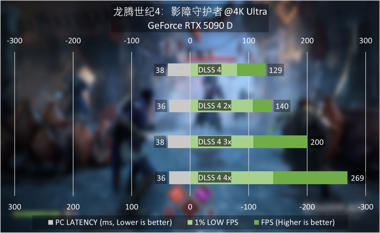 另外一款可以通過NVIDIA APP配置的遊戲是《龍騰世紀4:影障守護者》,可以看到DLSS 4 4X提升幅度同樣明顯。