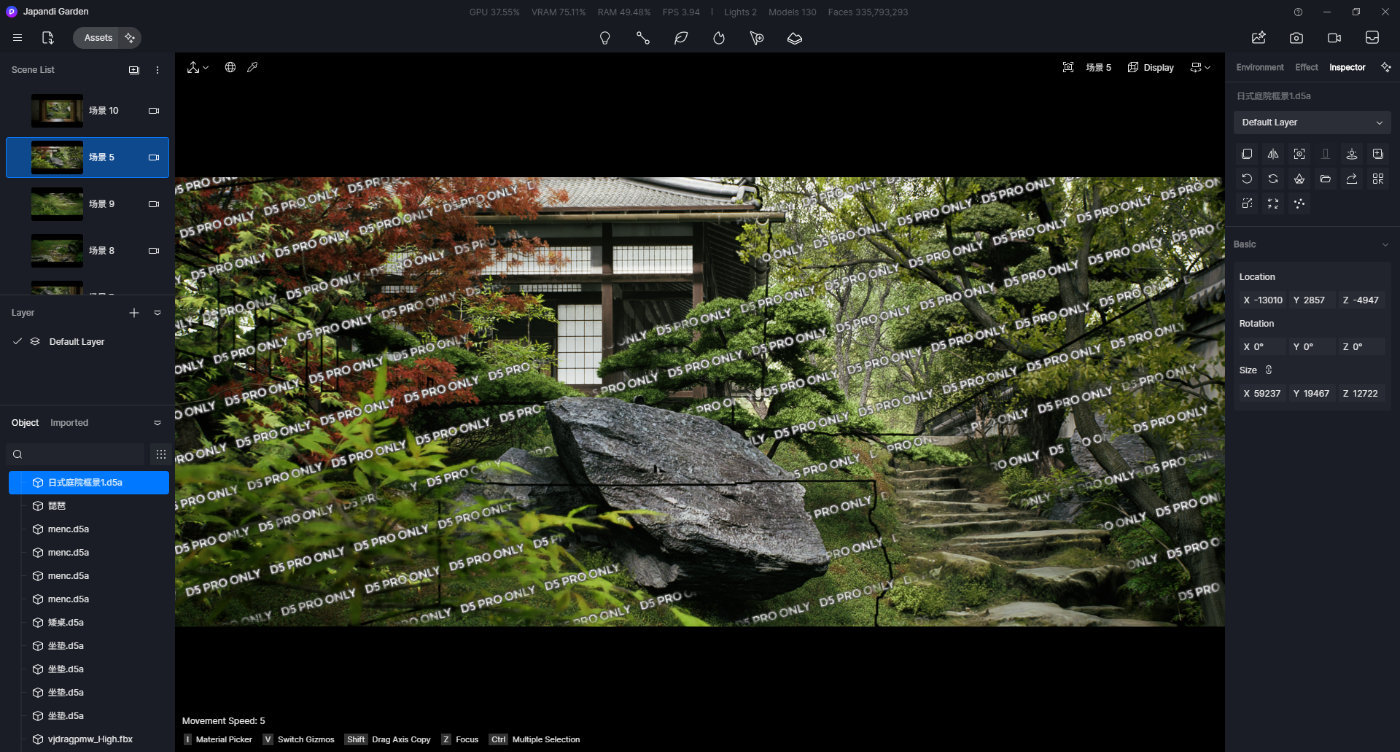 值得一提的是,DLSS 4技術也已經帶入到專業軟件中,D5渲染器就是首發支持DLSS 4的專業軟件。在軟件菜單中,可以看到Super Resolution,Ray Reconstruction和Frame Generation選項。而DLSS 4 4X多幀生成則可以通過NVIDIA APP來實現。