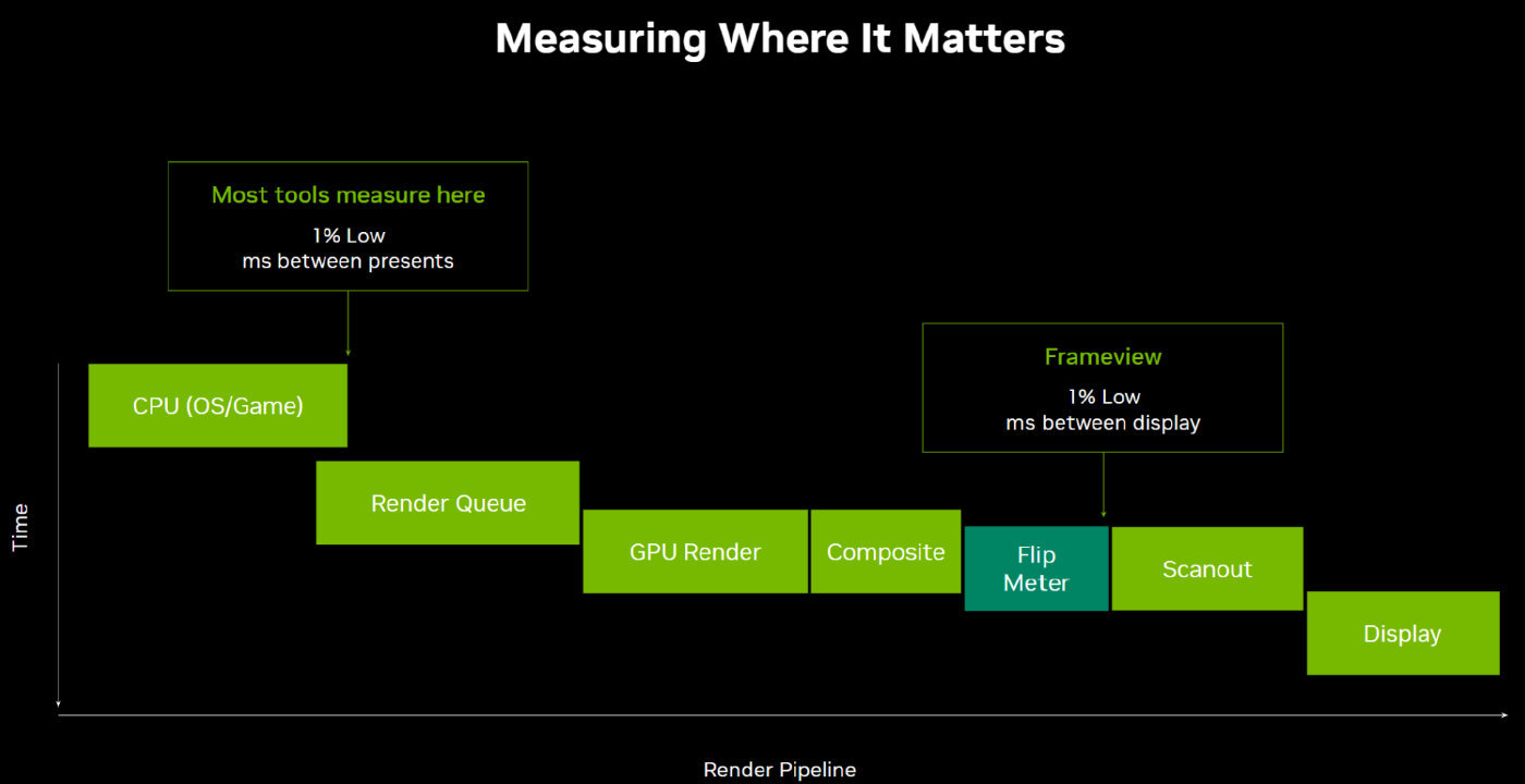 值得一提,前面檢測的1% Low FPS均使用FrameView利用MsBetweenDisplayChange來計算檢測,原因是常規的檢測方式依靠CPU將幀傳遞給GPU傳遞的時差進行判斷,由於Blackwell使用了多幀生成技術,利用Flip Metering而非CPU的幀速率作爲判斷,因此這套方式並不準確。通過GPU原生的翻轉計量,這可以更爲精確的抓到結果。