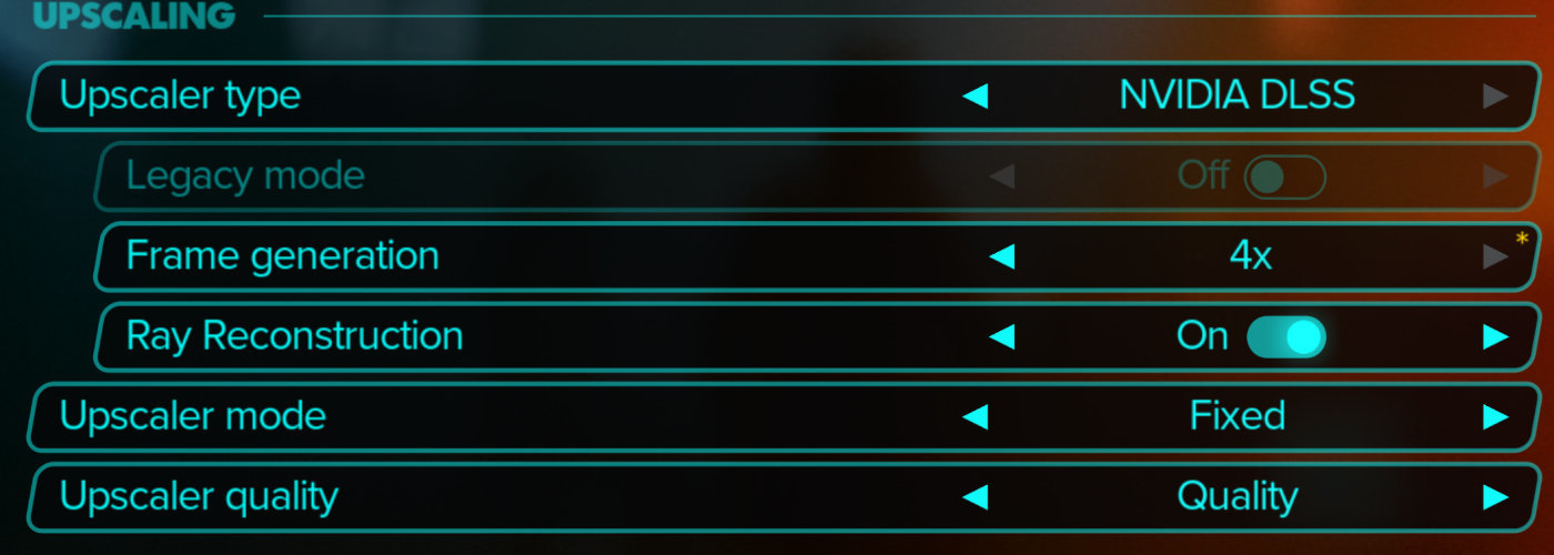 《星球大戰:亡命之徒》是近期以星球大戰IP作爲延伸開放世界遊戲,雖然遊戲可玩性中規中矩,但遊戲畫質和對DLSS 4支持可以成爲很好的參考對象。在遊戲設置選項中能夠看到NVIDIA DLSS選項,並且附帶了幀生成Frame Generation和光線重建Ray Reconstruction兩個選項,其中幀生成Frame Generation可以提供2X、3X和4X的幀率生成。