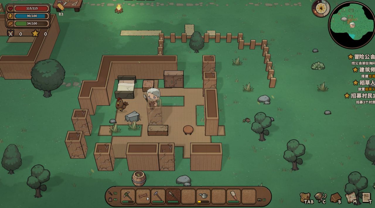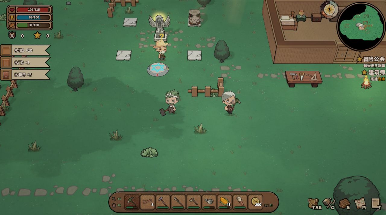 不过毕竟是EA版本,目前的体验过程中仍存在一些不足之处,例如前期的体力条不够用,睡觉时体力恢复速度较慢;工具的耐久度消耗过快;指引不够明显;受到攻击时掉血的反馈也不够明显。