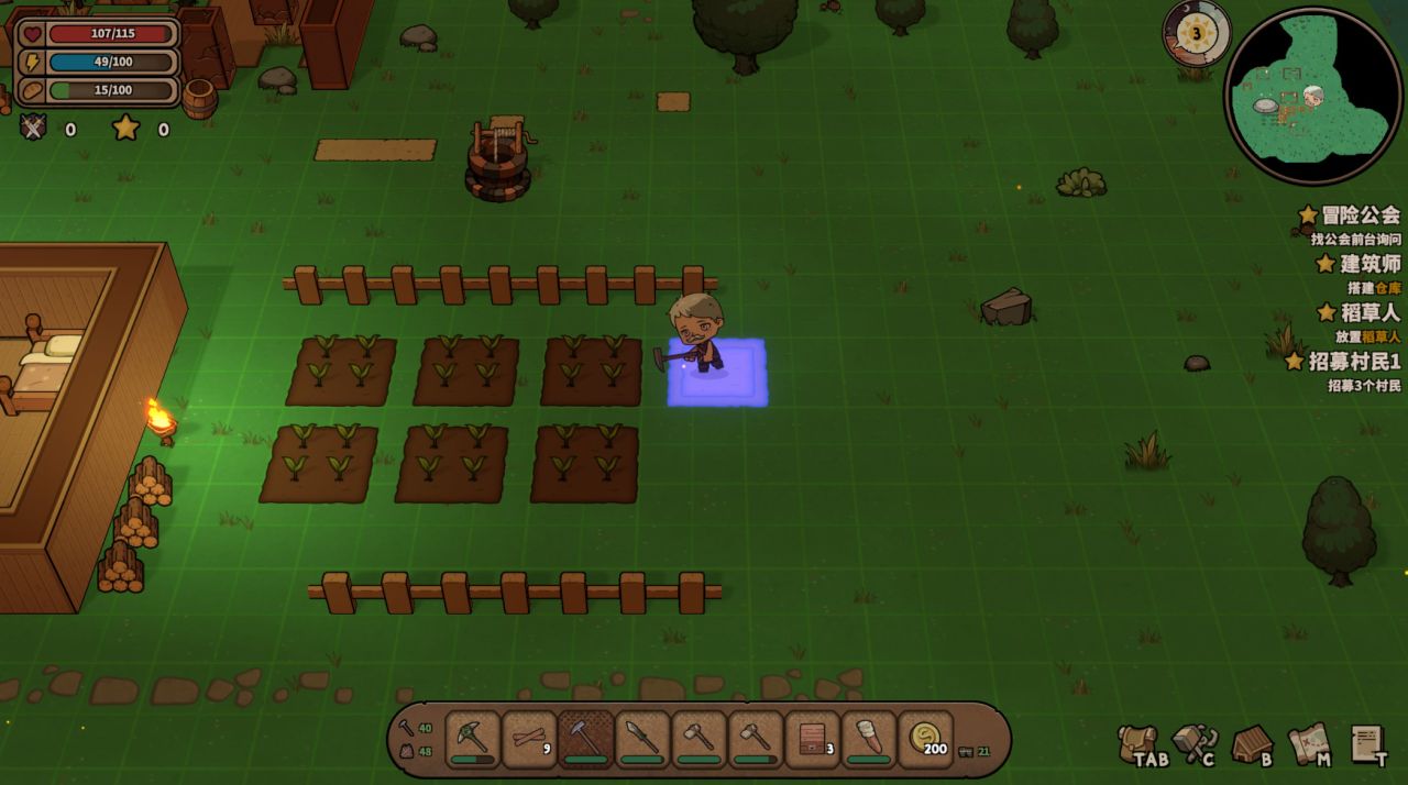 乍一看,这又是一款缝合型游戏,但《拾光物语》并不是完全没有自己的独特创意设计。比如,游戏中的居民NPC如果想要帮助你耕种,你可以制作一个稻草人并将其放置在任意一处。放置后,负责农业的村民会在稻草人周围进行农作物的种植。