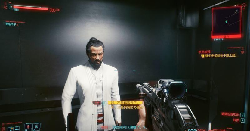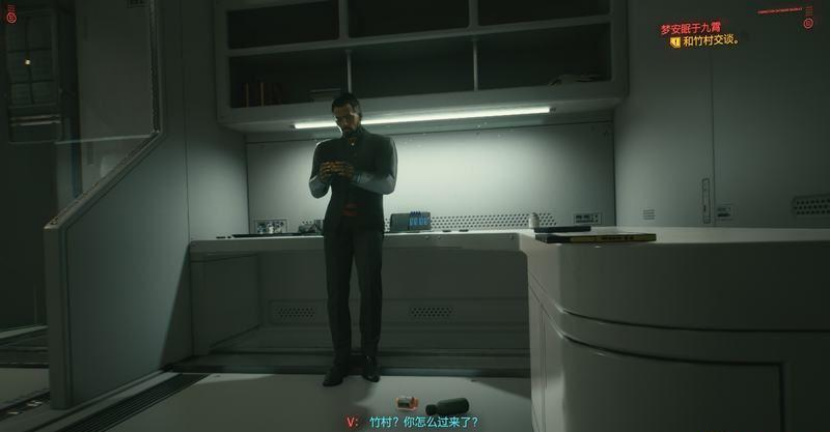 电梯中,竹村会让V选择手下的进攻方式。无论是否潜行流都可以选悄悄行事,就算潜行失败,士兵也会自动开始强攻。