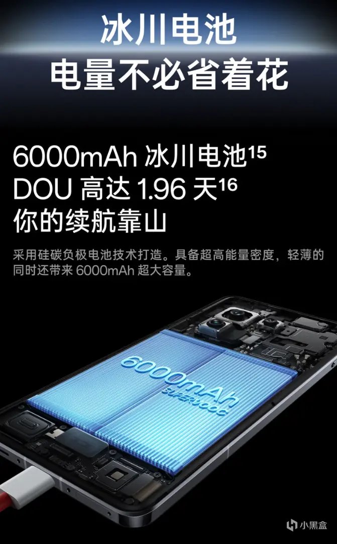 ▲而对于游戏来说,除了性能,续航也是十分重要的一环,一加13续航体验再进化,带来6000mAh超大容量「冰川电池」,基于新一代球型硅碳以及蜂巢仿生结构打造,能量密度达到行业领先的805Wh/L,这让一加13在拥有大电池容量的同时还能保证轻薄手感的同时DOU续航达到1.96天,即使1%应急电量也可支持41分钟通话。